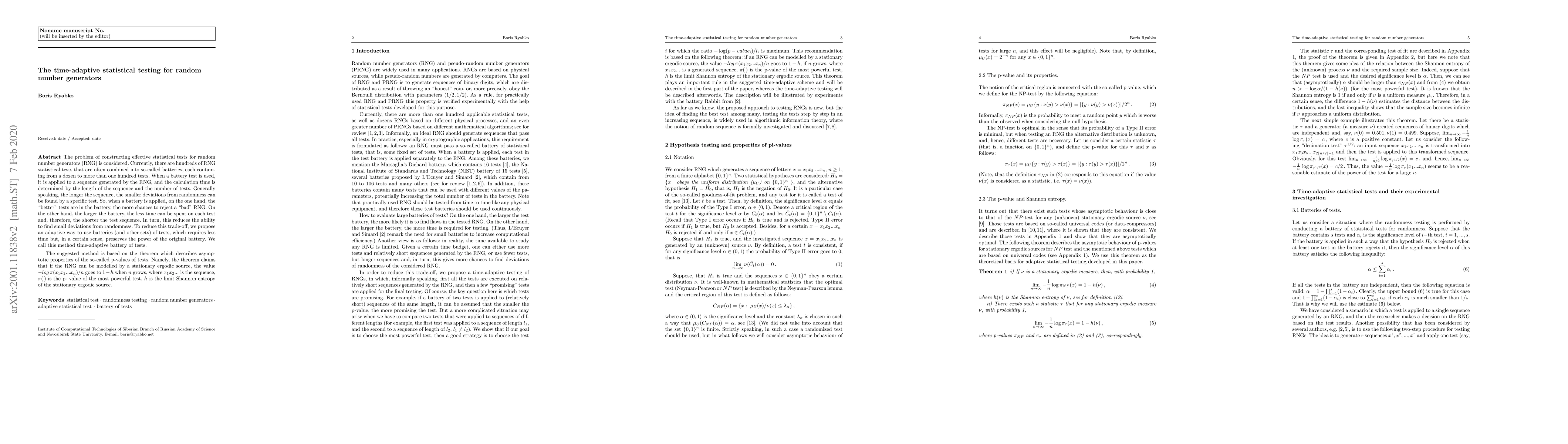 Researchers propose a new method to test random number generators called time-adaptive statistical testing, which balances calculation time with detection power for small deviations from randomness. This approach preserves the effectiveness of existing test batteries while reducing computational time.