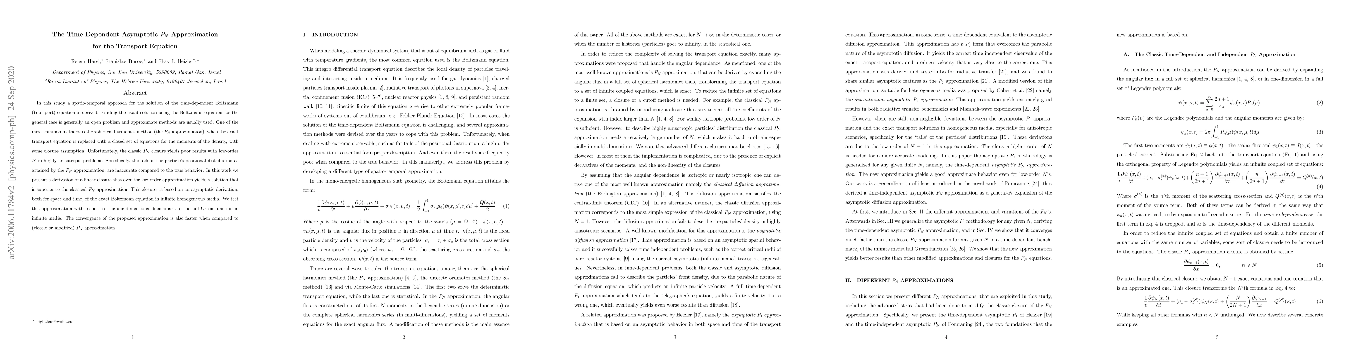 In this study a spatio-temporal approach for the solution of the time-dependent Boltzmann (transport) equation is derived. Finding the exact solution using the Boltzmann equation for the general case is generally an open problem and approximate methods are usually used. One of the most common methods is the spherical harmonics method (the $P_N$ approximation), when the exact transport equation is replaced with a closed set of equations for the moments of the density, with some closure assumption. Unfortunately, the classic $P_N$ closure yields poor results with low-order $N$ in highly anisotropic problems. Specifically, the tails of the particle's positional distribution as attained by the $P_N$ approximation, are inaccurate compared to the true behavior. In this work we present a derivation of a linear closure that even for low-order approximation yields a solution that is superior to the classical $P_N$ approximation. This closure, is based on an asymptotic derivation, both for space and time, of the exact Boltzmann equation in infinite homogeneous media. We test this approximation with respect to the one-dimensional benchmark of the full Green function in infinite media. The convergence of the proposed approximation is also faster when compared to (classic or modified) $P_N$ approximation.
