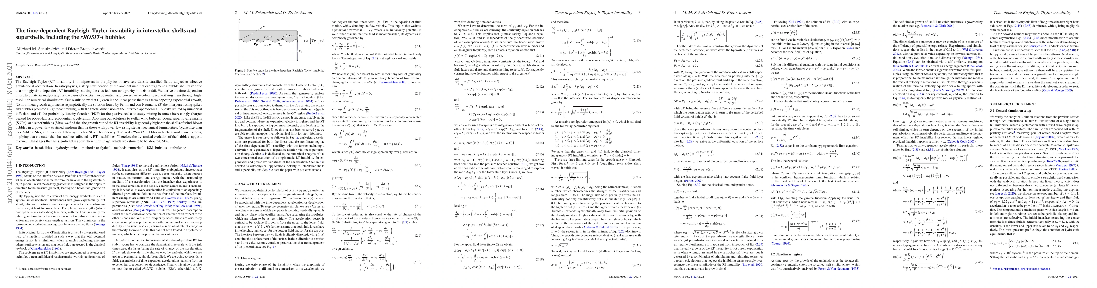 This paper explores the time-dependent Rayleigh-Taylor instability in interstellar shells and supershells, deriving analytical criteria for different acceleration types and validating them with simulations. The study finds that the instability is more pronounced in wind-blown bubbles compared to supernova remnants and superbubbles, and suggests the eROSITA bubbles' smooth rims indicate they are older than currently estimated, at around 20 Myr.