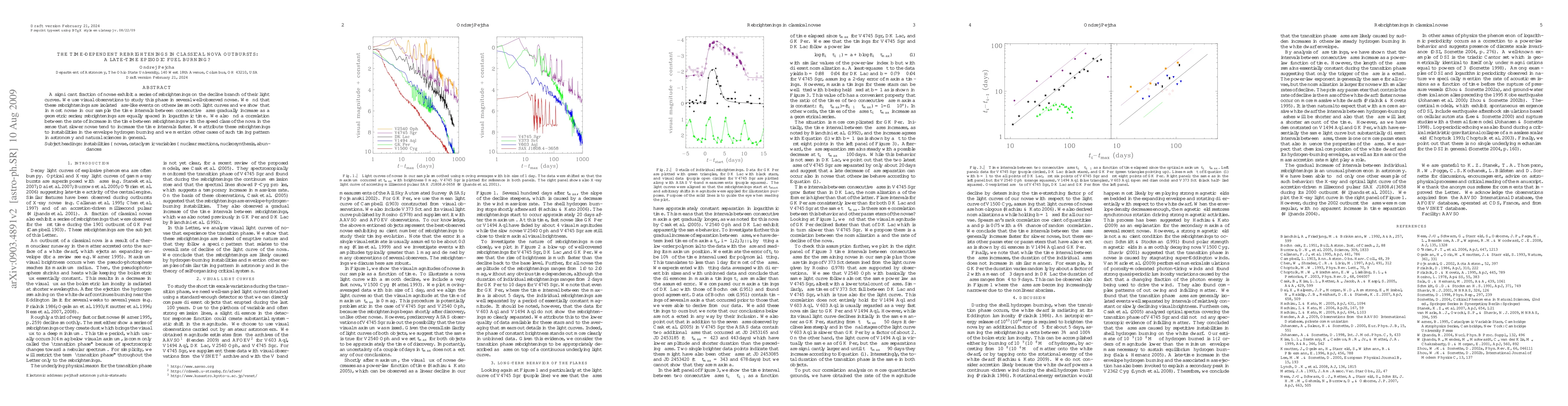 Novae exhibit rebrightenings on decline that increase in time intervals at a geometric series, suggesting instabilities in envelope hydrogen burning, with slower novae showing faster growth.