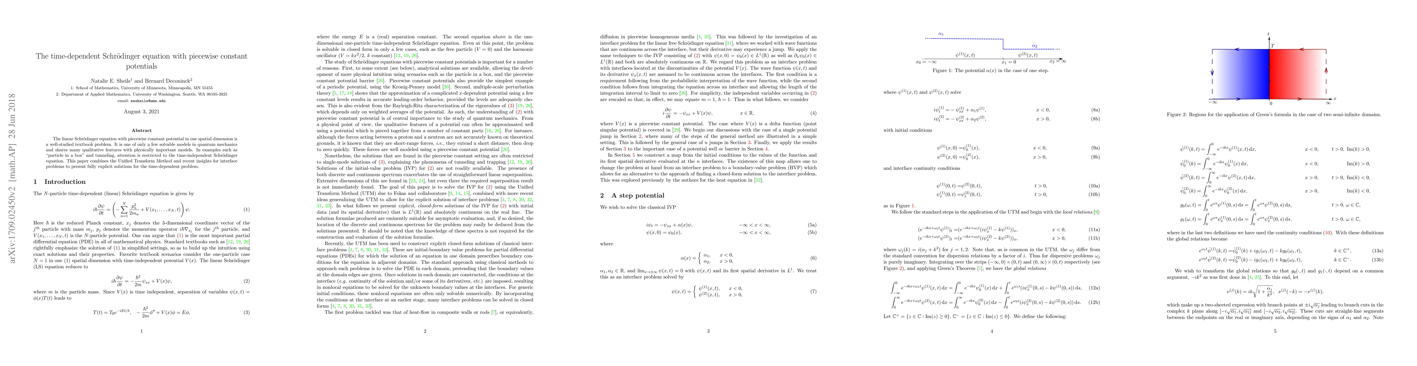 This paper provides fully explicit solutions for the time-dependent Schrödinger equation with piecewise constant potentials using the Unified Transform Method and recent insights into interface problems, extending beyond the time-independent "particle in a box" and tunneling models.