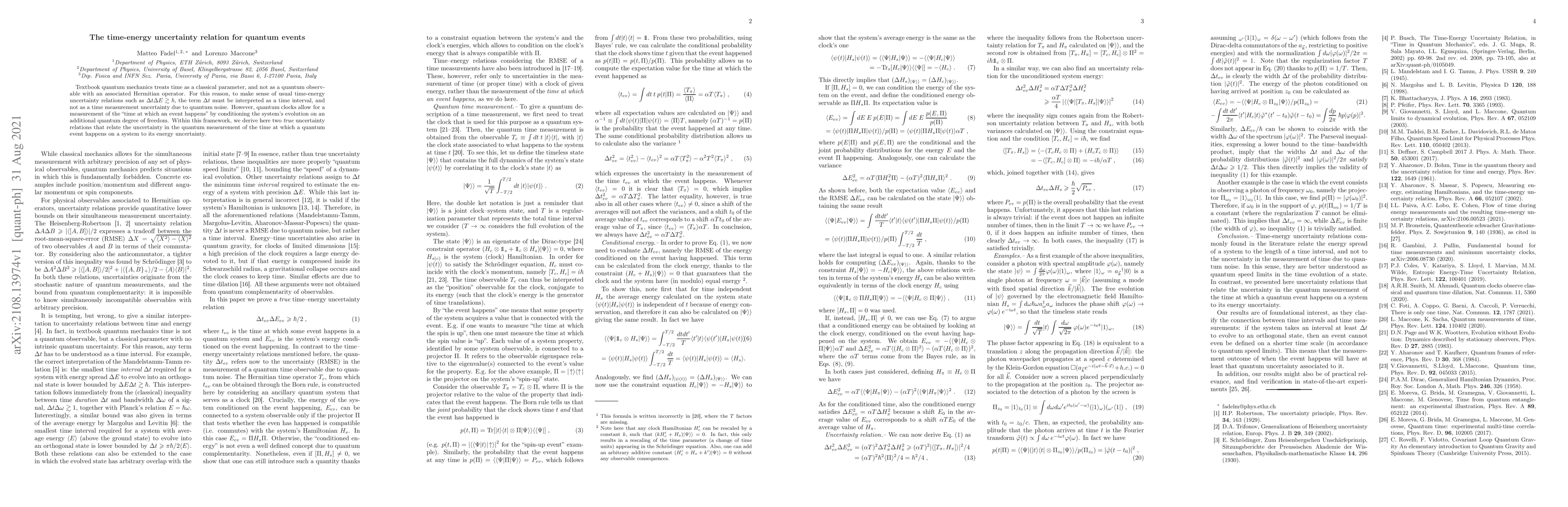 This paper derives two true uncertainty relations that link the uncertainty in measuring the time of a quantum event to its energy uncertainty, contrasting with traditional interpretations that treat time as a classical parameter. Quantum clocks enable precise time measurements, redefining the conventional time-energy uncertainty principle.