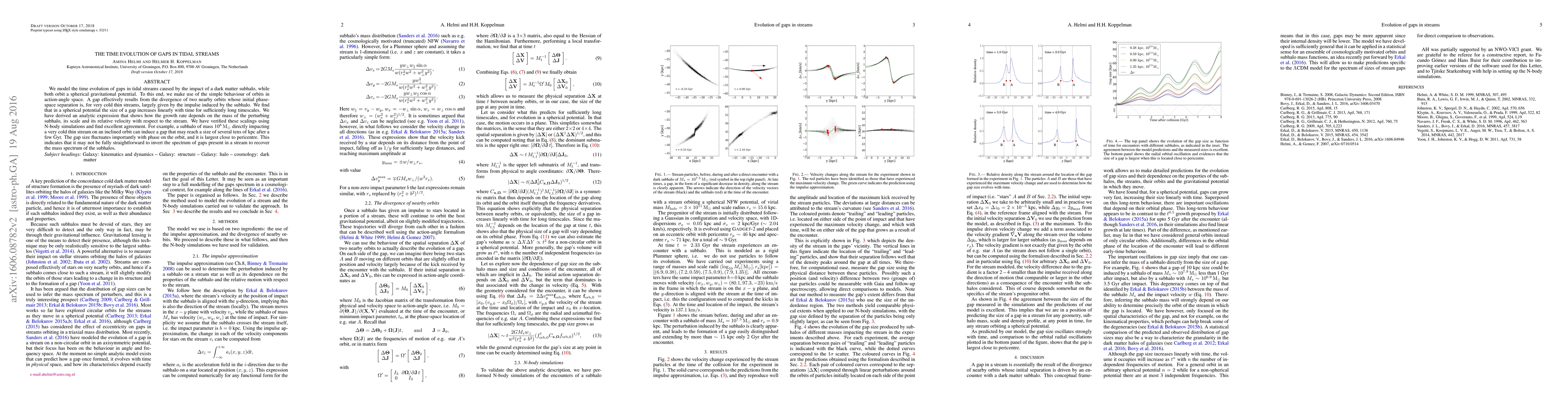 This research models how gaps in tidal streams grow over time due to dark matter subhalo impacts in a spherical gravitational potential. The study finds that gap size increases linearly with time, dependent on the subhalo's mass, scale, and relative velocity. N-body simulations validate these analytic scalings, indicating that gap sizes can reach tens of kpc after several Gyr, with significant fluctuations near pericenter, complicating the recovery of subhalo mass spectrum from stream gap observations.