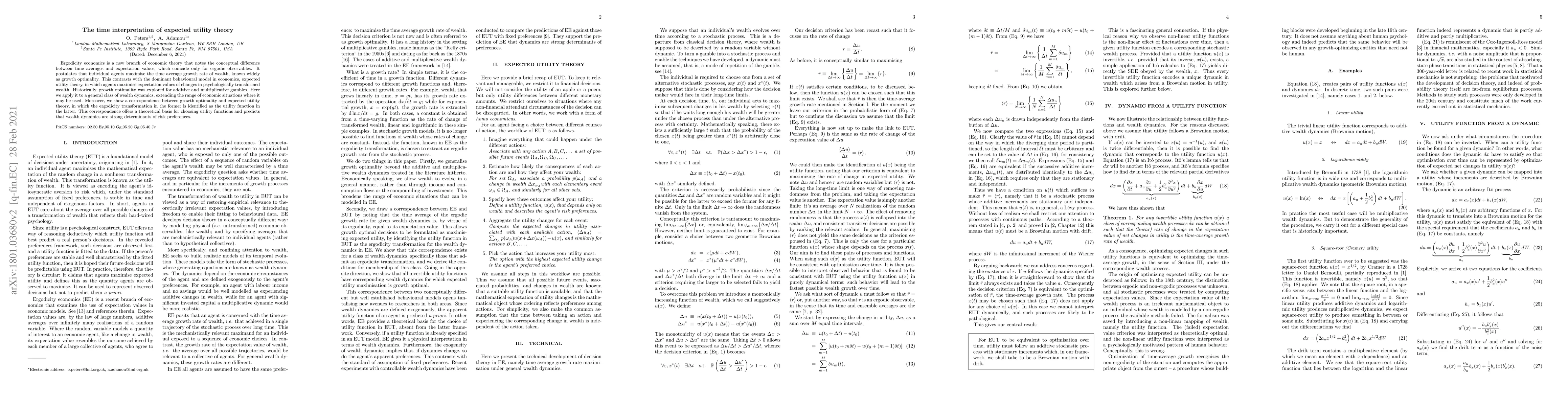 Ergodicity economics is a new branch of economic theory that notes the conceptual difference between time averages and expectation values, which coincide only for ergodic observables. It postulates that individual agents maximise the time average growth rate of wealth, known widely as growth optimality. This contrasts with the dominant behavioural model in economics, expected utility theory, in which agents maximise expectation values of changes in psychologically transformed wealth. Historically, growth optimality was explored for additive and multiplicative gambles. Here we apply it to a general class of wealth dynamics, extending the range of economic situations where it may be used. Moreover, we show a correspondence between growth optimality and expected utility theory, in which the ergodicity transformation in the former is identified as the utility function in the latter. This correspondence offers a theoretical basis for choosing utility functions and predicts that wealth dynamics are strong determinants of risk preferences.