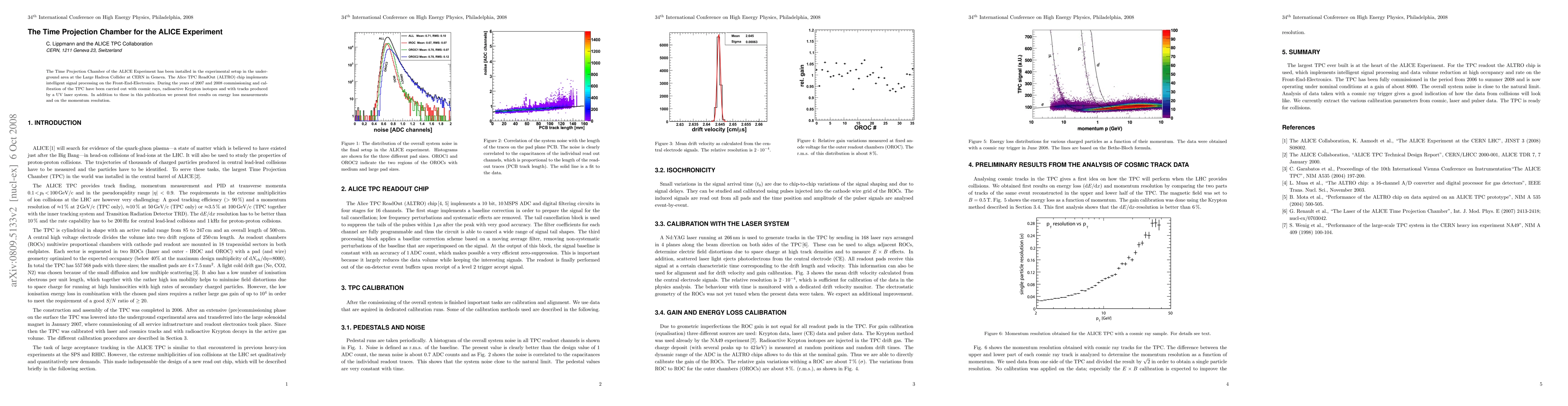 The ALICE Experiment's Time Projection Chamber has been installed at CERN, using intelligent signal processing to measure energy loss and momentum resolution with initial results from cosmic rays and a UV laser system.