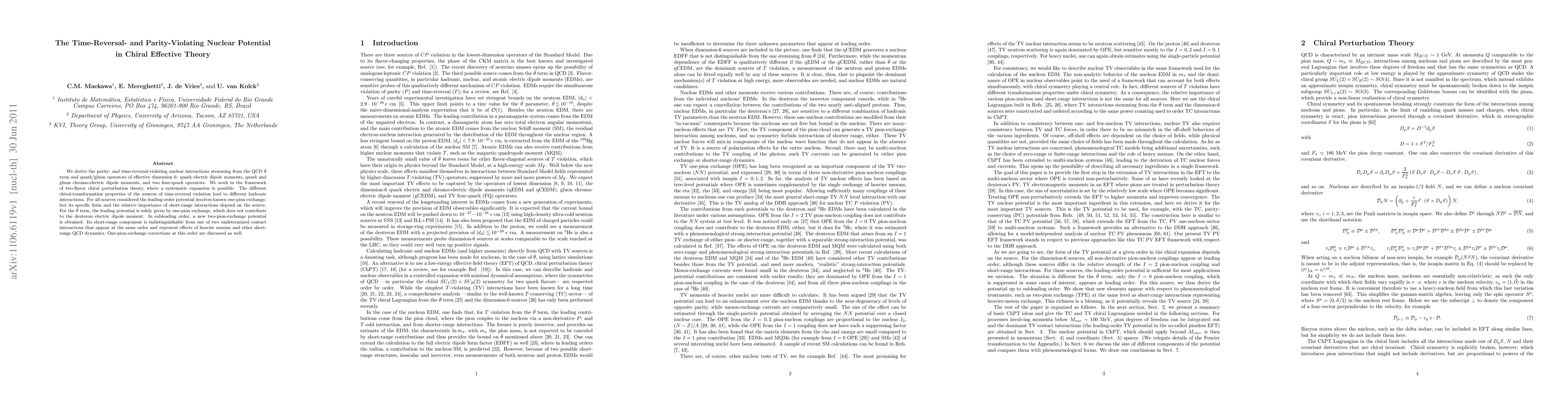 This paper derives parity- and time-reversal-violating nuclear interactions from QCD theta terms and effective dimension 6 operators in two-flavor chiral perturbation theory. The study reveals distinct hadronic interactions depending on the source of time-reversal violation, with leading-order potentials involving one-pion exchange and subleading two-pion-exchange contributions.
