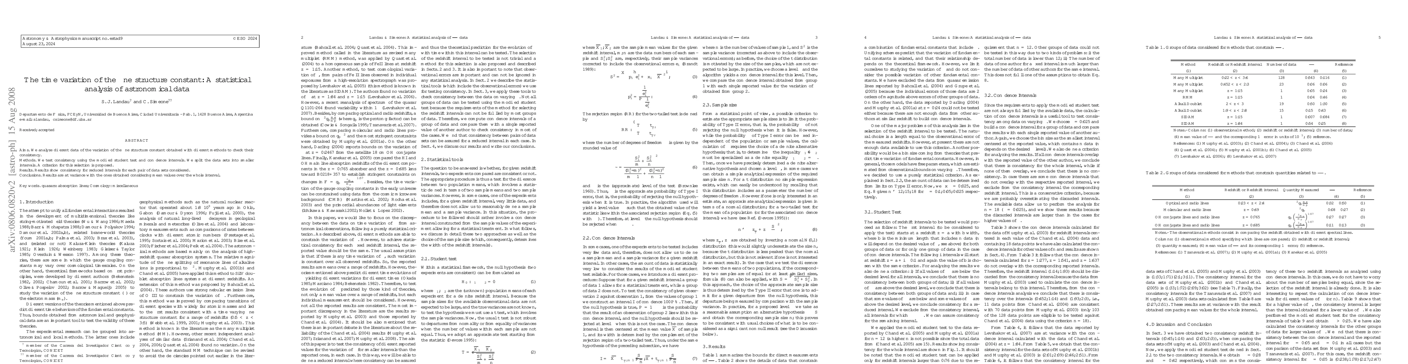 This paper statistically analyzes various datasets on the fine structure constant's variation, employing the modified Student test and confidence intervals. It finds consistency within smaller data intervals, contrasting with discrepancies seen when considering mean values over larger intervals.