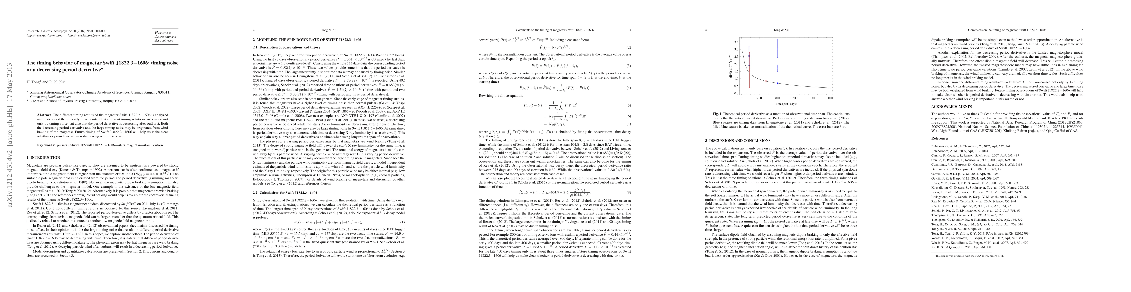 The different timing results of the magnetar Swift J1822.3-1606 is analyzed and understood theoretically. It is pointed that different timing solutions are caused not only by timing noise, but also that the period derivative is decreasing after outburst. Both the decreasing period derivative and the large timing noise may be originated from wind braking of the magnetar. Future timing of Swift J1822.3-1606 will help us make clear whether its period derivative is decreasing with time or not.