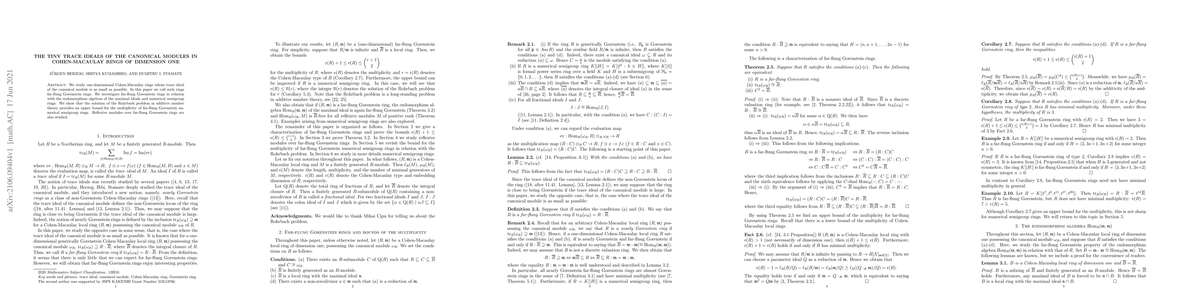 We study one-dimensional Cohen-Macaulay rings whose trace ideal of the canonical module is as small as possible. In this paper we call such rings far-flung Gorenstein rings. We investigate far-flung Gorenstein rings in relation with the endomorphism algebras of the maximal ideals and numerical semigroup rings. We show that the solution of the Rohrbach problem in additive number theory provides an upper bound for the multiplicity of far-flung Gorenstein numerical semigroup rings. Reflexive modules over far-flung Gorenstein rings are also studied.