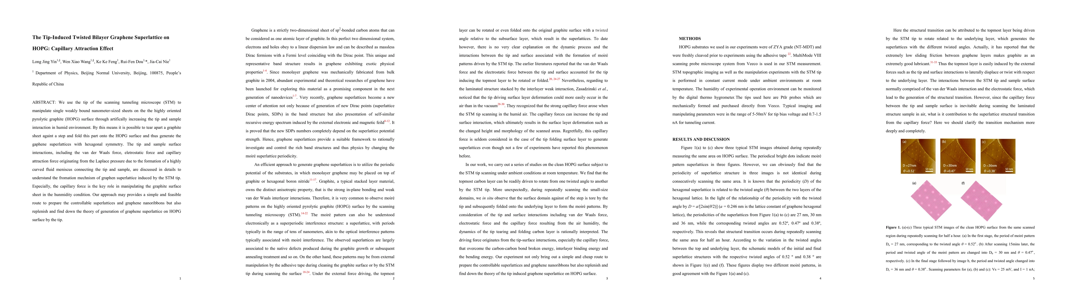 This paper explores the manipulation of single graphene sheets using a scanning tunneling microscope (STM) tip to create twisted bilayer graphene superlattices on HOPG, emphasizing the role of capillary attraction forces in the process, particularly in humid environments. The study provides insights into the formation mechanisms of graphene superlattices and suggests a feasible method for their controllable synthesis.