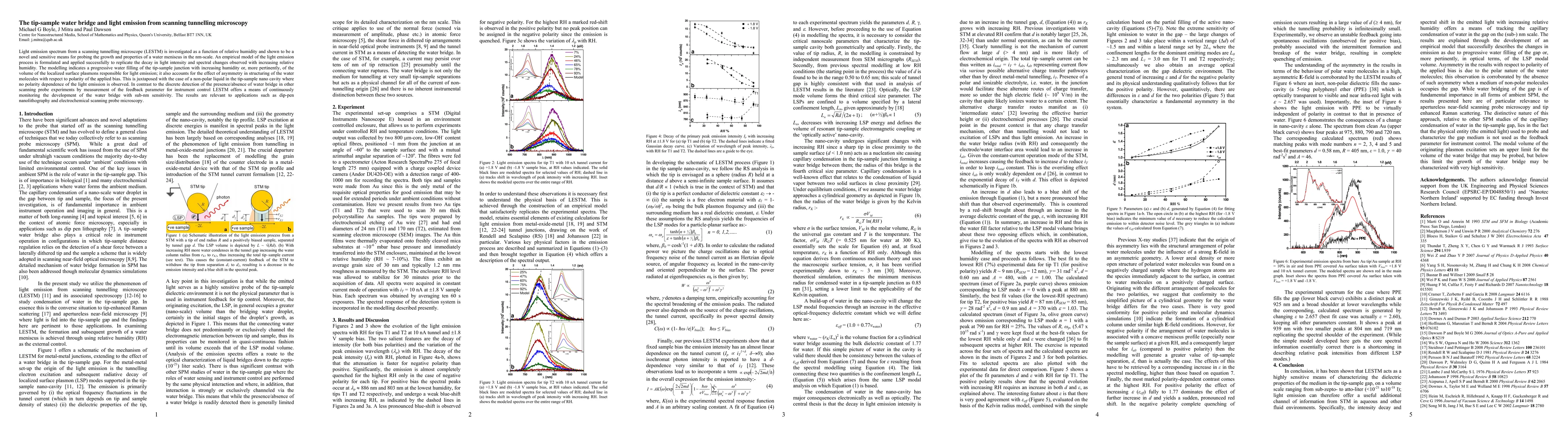 A scanning tunnelling microscope reveals a novel method to study water bridges and light emission in nm-scale distances, offering sub-nm sensitivity for monitoring water bridge development.