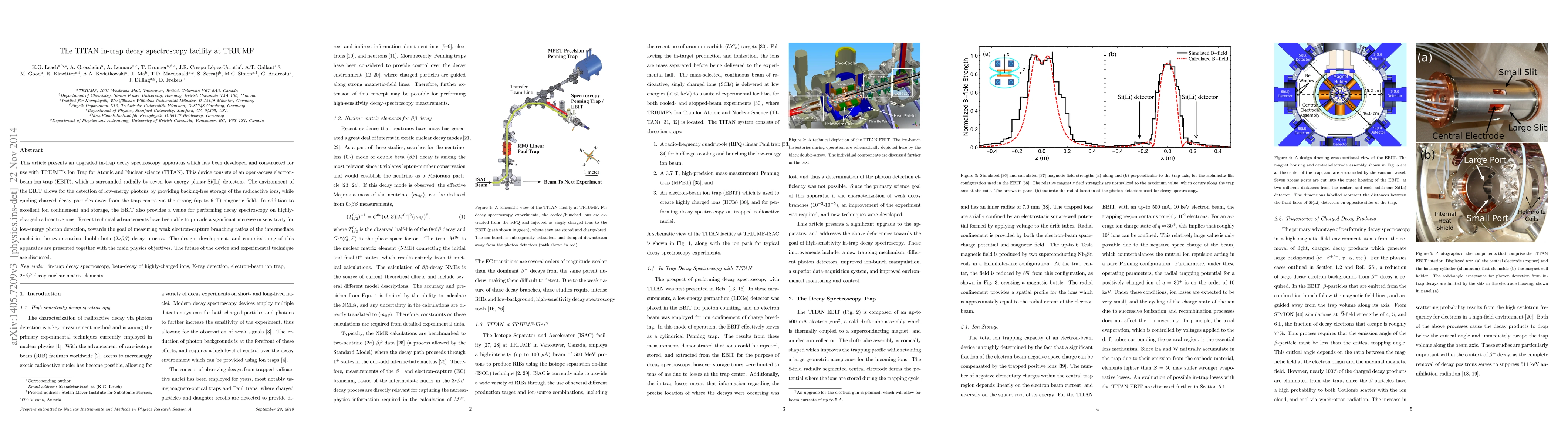 The TITAN facility at TRIUMF features an upgraded in-trap decay spectroscopy apparatus with an electron-beam ion trap, enhancing sensitivity for low-energy photon detection to measure weak electron-capture branching ratios in the $2\nu\beta\beta$ decay process. The device aims to improve ion confinement and storage for highly-charged radioactive ions.