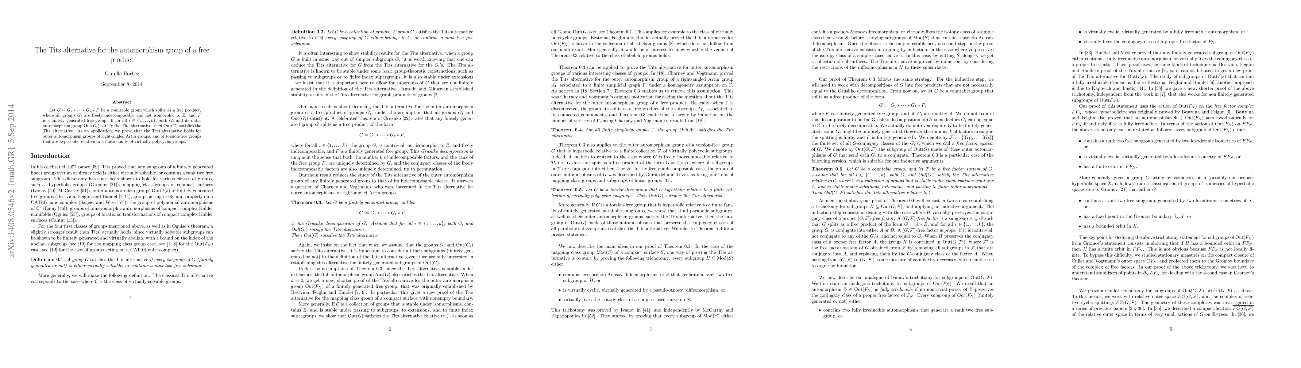 The paper employs a combination of techniques from geometric group theory and the theory of outer automorphism groups of free products, utilizing the Tits alternative as a central concept.