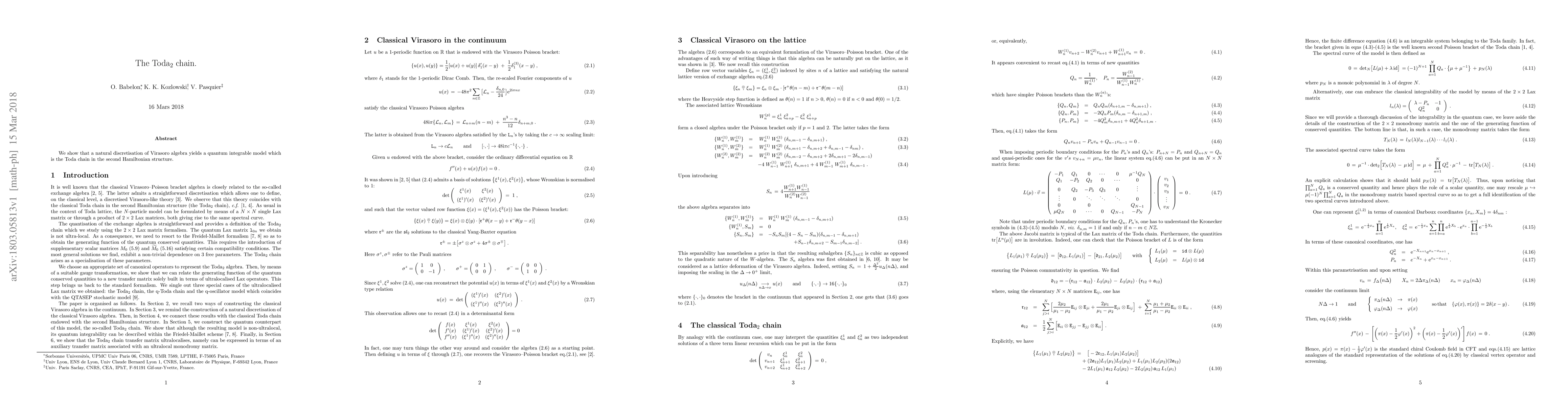 This paper reveals that a discretised Virasoro algebra creates a quantum integrable model known as the Toda chain in its second Hamiltonian structure.