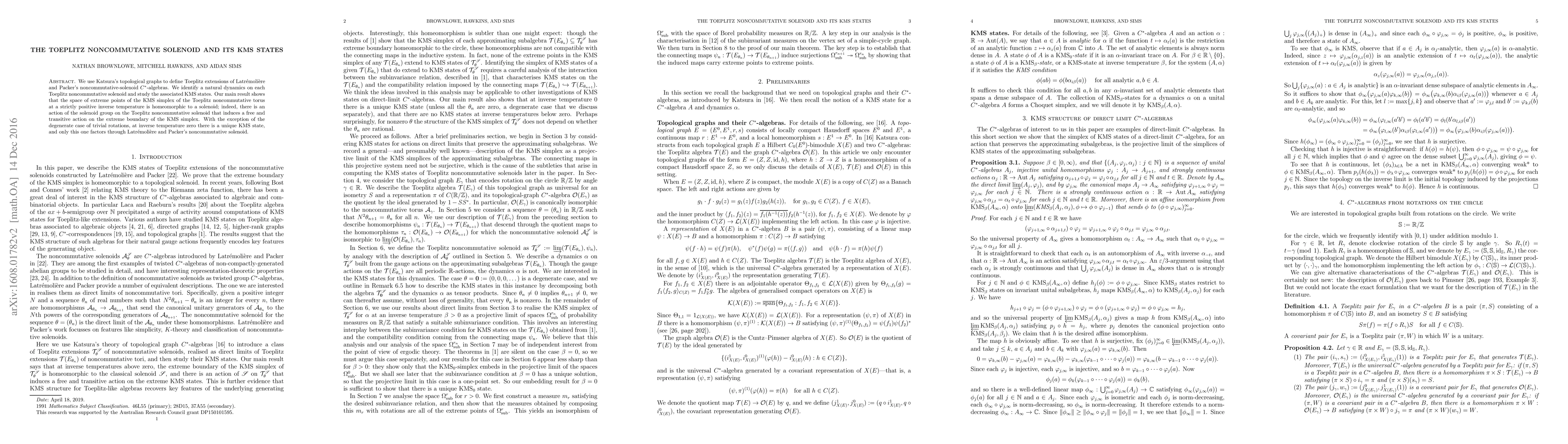 We use Katsura's topological graphs to define Toeplitz extensions of Latr\'emoli\`ere and Packer's noncommutative-solenoid C*-algebras. We identify a natural dynamics on each Toeplitz noncommutative solenoid and study the associated KMS states. Our main result shows that the space of extreme points of the KMS simplex of the Toeplitz noncommutative torus at a strictly positive inverse temperature is homeomorphic to a solenoid; indeed, there is an action of the solenoid group on the Toeplitz noncommutative solenoid that induces a free and transitive action on the extreme boundary of the KMS simplex. With the exception of the degenerate case of trivial rotations, at inverse temperature zero there is a unique KMS state, and only this one factors through Latr\'emoli\`ere and Packer's noncommutative solenoid.