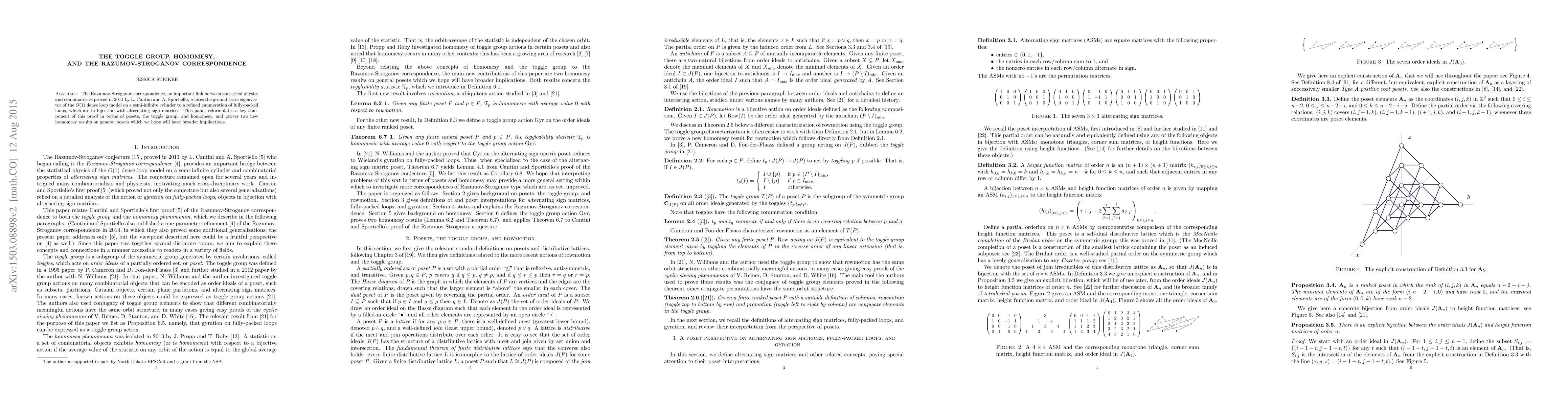 This paper reformulates the Razumov-Stroganov correspondence using the toggle group and homomesy, proving new homomesy results on general posets that may have broader implications beyond the original statistical physics and combinatorics context.