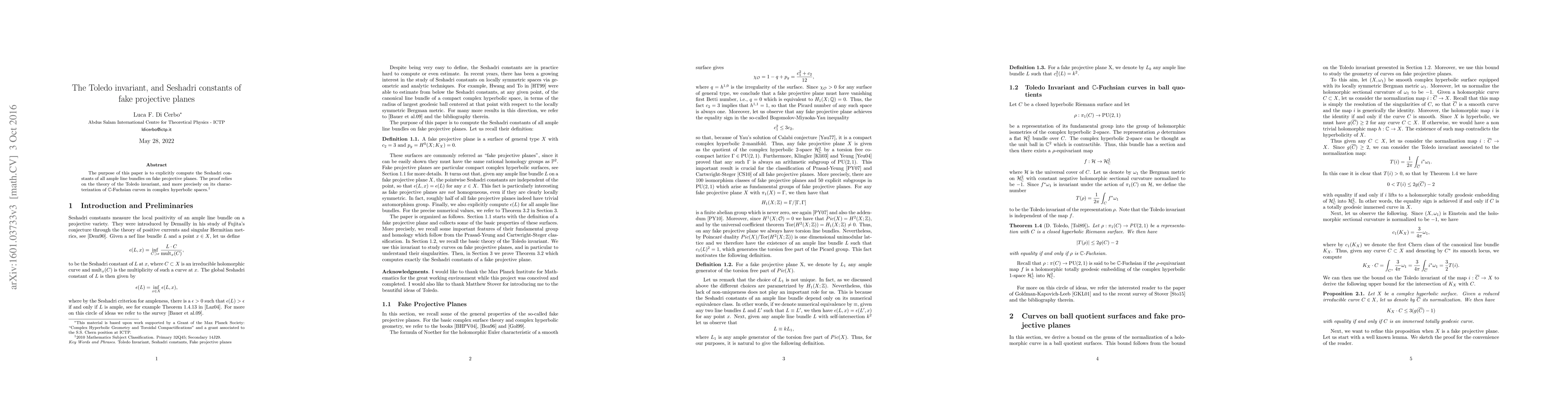 This paper calculates the Seshadri constants of ample line bundles on fake projective planes using the theory of the Toledo invariant, providing new insights into complex hyperbolic spaces.