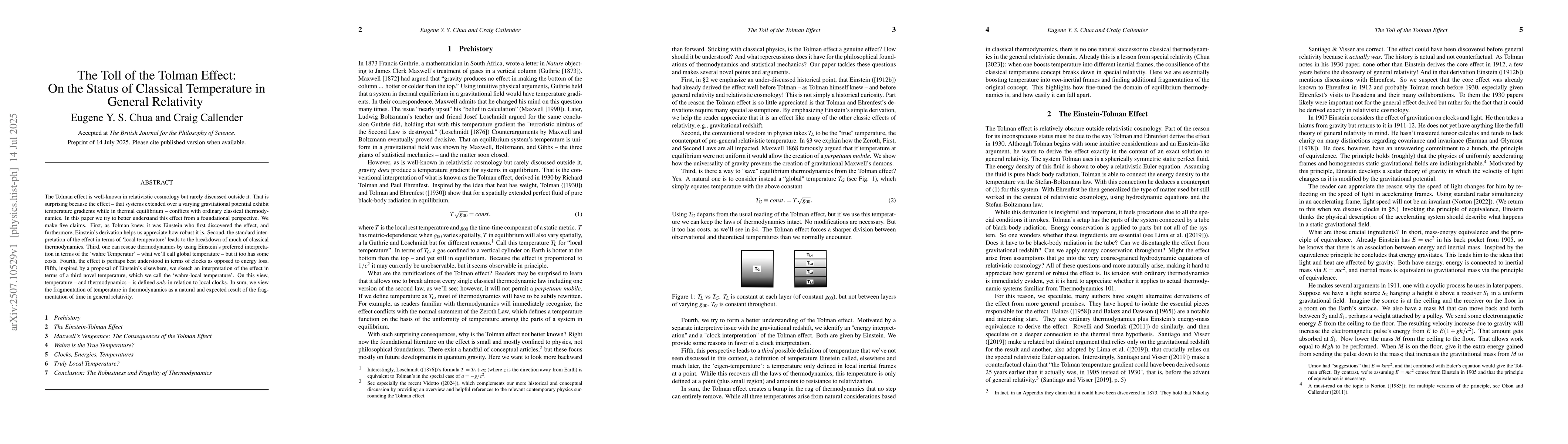 The Tolman effect is well-known in relativistic cosmology but rarely discussed outside it. That is surprising because the effect -- that systems extended over a varying gravitational potential exhibit temperature gradients while in thermal equilibrium -- conflicts with ordinary classical thermodynamics. In this paper we try to better understand this effect from a foundational perspective. We make five claims. First, as Tolman knew, it was Einstein who first discovered the effect, and furthermore, Einstein's derivation helps us appreciate how robust it is. Second, the standard interpretation of the effect in terms of 'local temperature' leads to the breakdown of much of classical thermodynamics. Third, one can rescue thermodynamics by using Einstein's preferred interpretation in terms of the 'wahre Temperatur' -- what we'll call global temperature -- but it too has some costs. Fourth, the effect is perhaps best understood in terms of clocks as opposed to energy loss. Fifth, inspired by a proposal of Einstein's elsewhere, we sketch an interpretation of the effect in terms of a third novel temperature, which we call the 'wahre-local temperature'. On this view, temperature -- and thermodynamics -- is defined only in relation to local clocks. In sum, we view the fragmentation of temperature in thermodynamics as a natural and expected result of the fragmentation of time in general relativity.