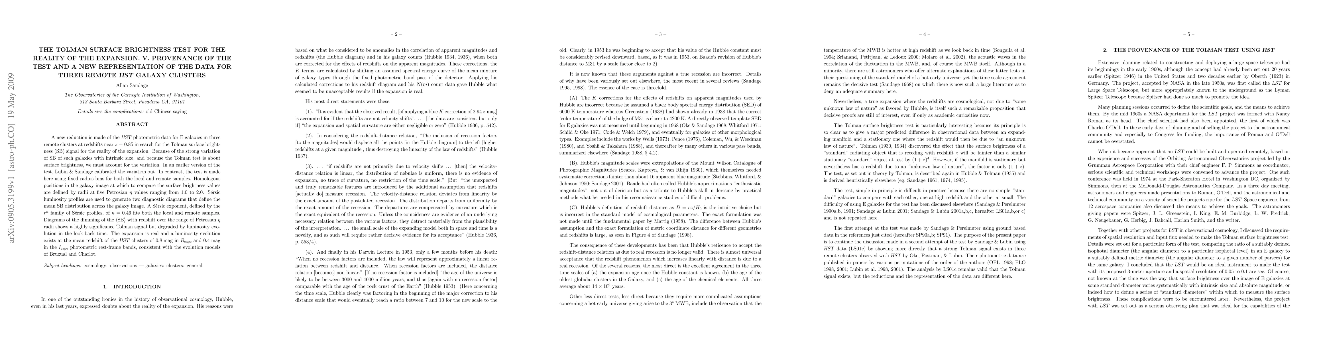 earlier version of the test, Lubin & Sandage calibrated the variation out. In