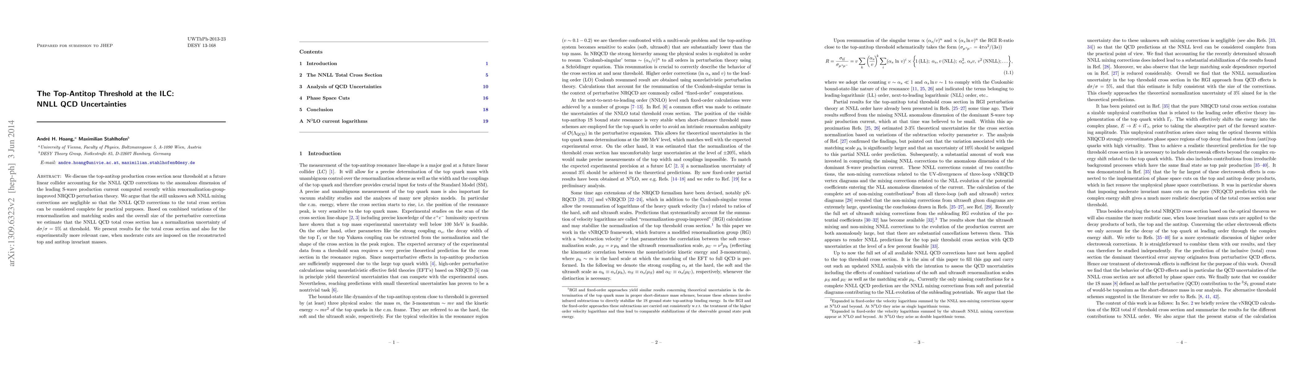 We discuss the top-antitop production cross section near threshold at a future linear collider accounting for the NNLL QCD corrections to the anomalous dimension of the leading S-wave production current computed recently within renormalization-group-improved NRQCD perturbation theory. We argue that the still unknown soft NNLL mixing corrections are negligible so that the NNLL QCD corrections to the total cross section can be considered complete for practical purposes. Based on combined variations of the renormalization and matching scales and the overall size of the perturbative corrections we estimate that the NNLL QCD total cross section has a normalization uncertainty of 5% at threshold. We present results for the total cross section and also for the experimentally more relevant case, when moderate cuts are imposed on the reconstructed top and antitop invariant masses.