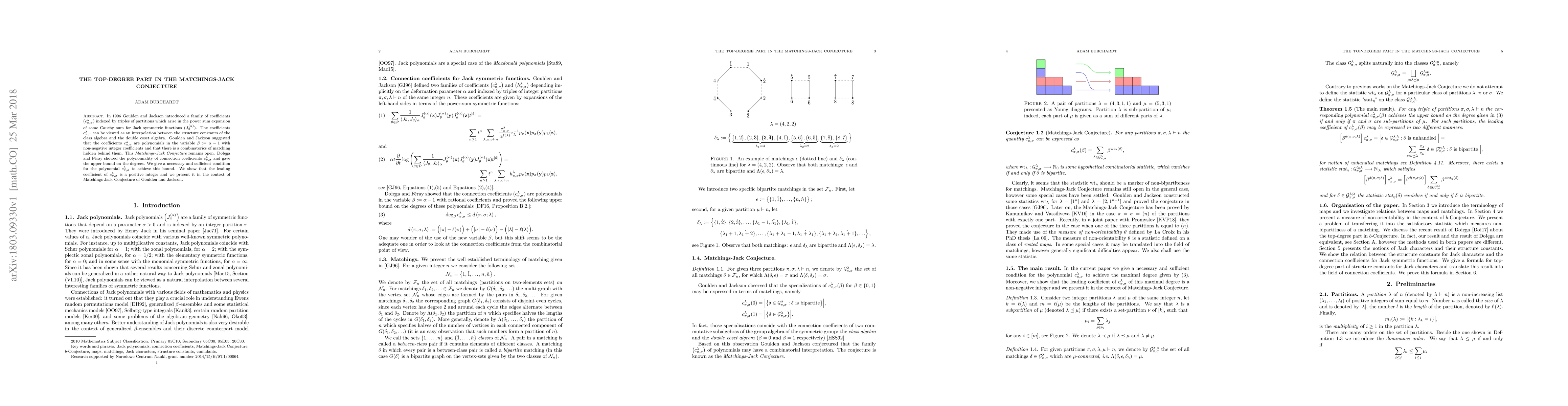 In 1996 Goulden and Jackson introduced a family of coefficients $( c_{\pi, \sigma}^{\lambda} ) $ indexed by triples of partitions which arise in the power sum expansion of some Cauchy sum for Jack symmetric functions $( J^{(\alpha )}_\pi )$. The coefficients $ c_{\pi, \sigma}^{\lambda} $ can be viewed as an interpolation between the structure constants of the class algebra and the double coset algebra. Goulden and Jackson suggested that the coefficients $ c_{\pi, \sigma}^{\lambda} $ are polynomials in the variable $\beta := \alpha-1$ with non-negative integer coefficients and that there is a combinatorics of matching hidden behind them. This \emph{Matchings-Jack Conjecture} remains open. Do\l{}\oldk{e}ga and F\'eray showed the polynomiality of connection coefficients $c^\lambda_{\pi,\sigma}$ and gave the upper bound on the degrees. We give a necessary and sufficient condition for the polynomial $ c_{\pi, \sigma}^{\lambda}$ to achieve this bound. We show that the leading coefficient of $ c_{\pi, \sigma}^{\lambda}$ is a positive integer and we present it in the context of Matchings-Jack Conjecture of Goulden and Jackson.