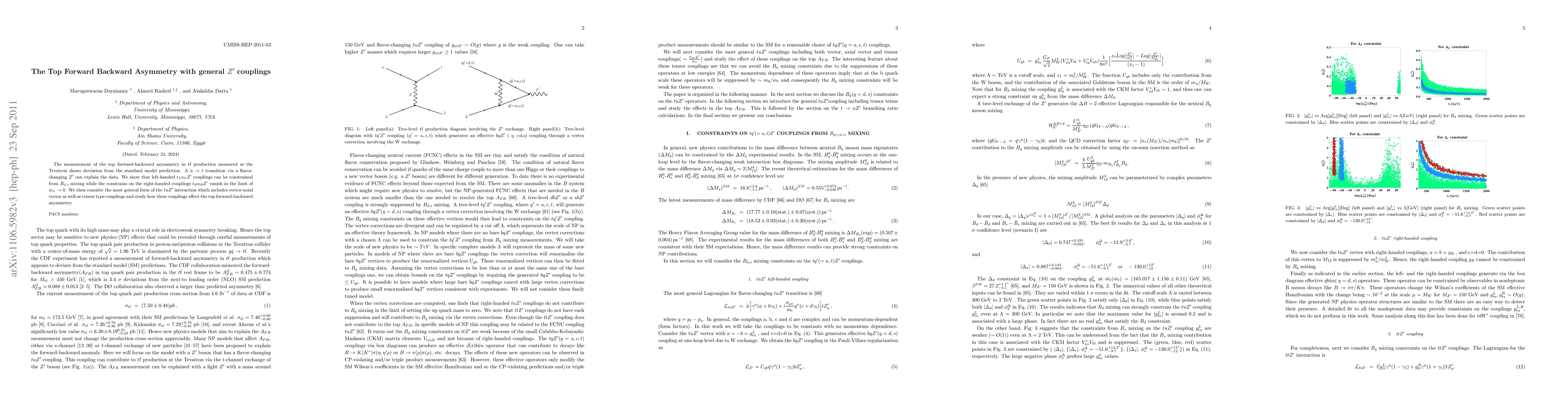 This paper investigates the top forward-backward asymmetry in $\ttbar$ production at the Tevatron, finding deviations from Standard Model predictions. It proposes that a flavor-changing $Z^{\prime}$ via a $u \to t$ transition could explain these deviations, with left-handed $t_Lu_LZ^{\prime}$ couplings constrained by $B_{d,s}$ mixing, while right-handed couplings vanish in the limit of $m_u \to 0$.