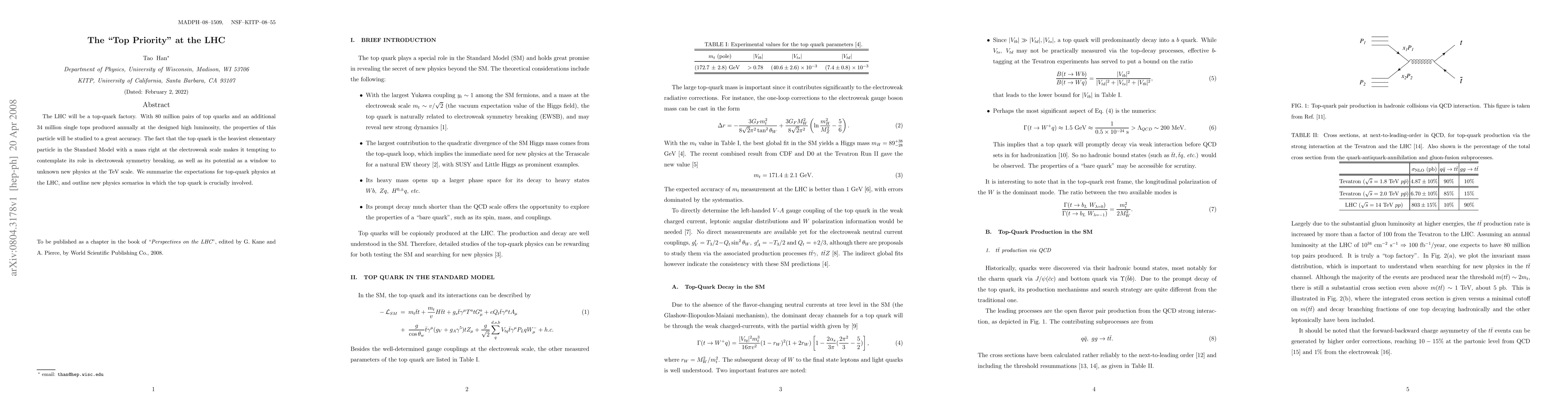 This paper discusses the LHC's role as a top-quark factory, expecting to produce 80 million top-quark pairs and 34 million single tops annually. The study aims to explore the top quark's properties, its role in electroweak symmetry breaking, and its potential as a gateway to new physics at the TeV scale.
