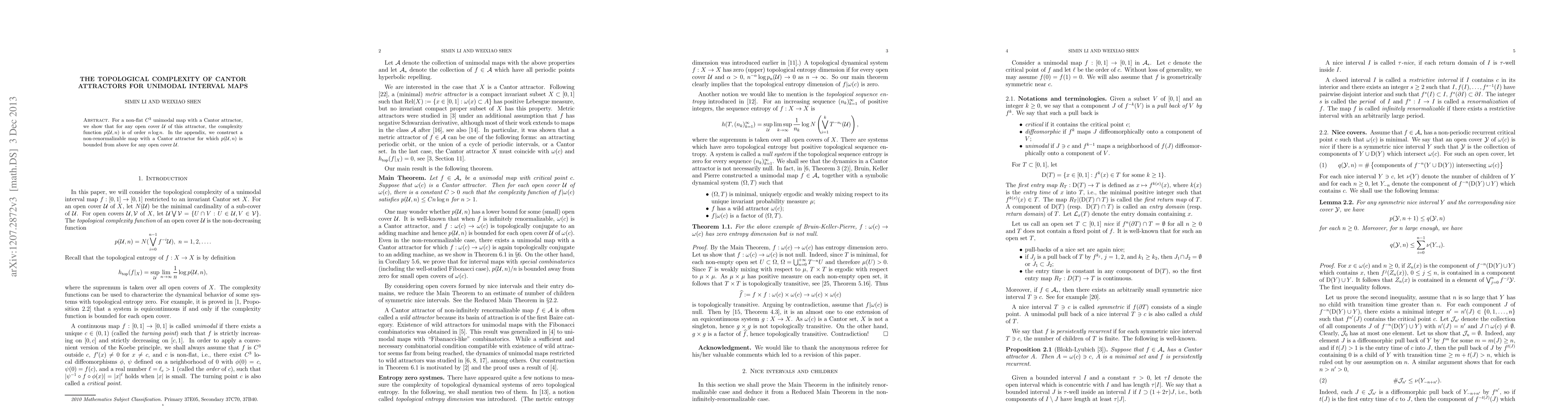 Summary: The study demonstrates that for $C^3$ unimodal maps with Cantor attractors, the complexity function scales as $n\log n$. An appendix provides a non-renormalizable map with a Cantor attractor where the complexity function is bounded.