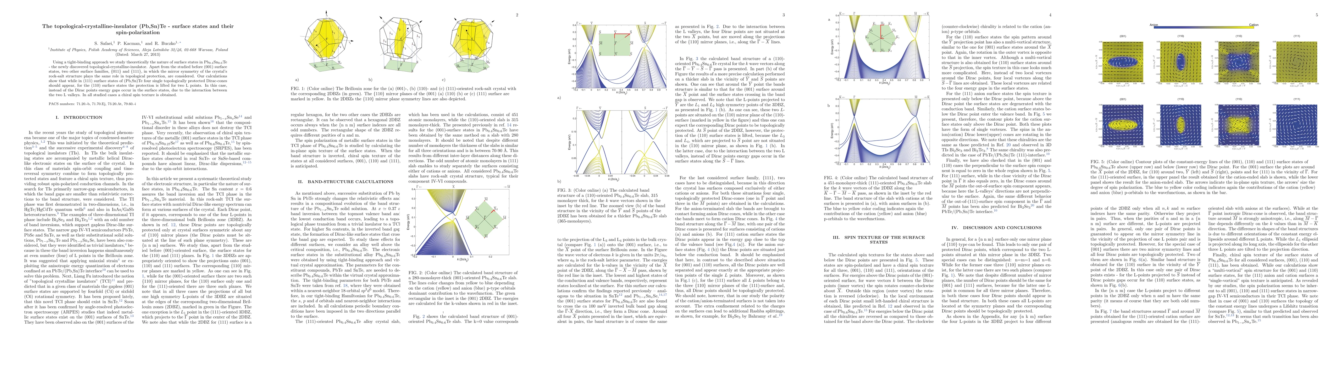 Using a tight-binding approach we study theoretically the nature of surface states in Pb0.4Sn0.6Te - the newly discovered topological-crystalline-insulator. Apart from the studied before (001) surface states, two other surface families, {011} and {111}, in which the mirror symmetry of the crystal's rock-salt structure plays the same role in topological protection, are considered. Our calculations show that while in (111) surface states of (Pb,Sn)Te four single topologically protected Dirac-cones should appear, for the (110) surface states the protection is lifted for two L points. In this case, instead of the Dirac points energy gaps occur in the surface states, due to the interaction between the two L valleys. In all studied cases a chiral spin texture is obtained.