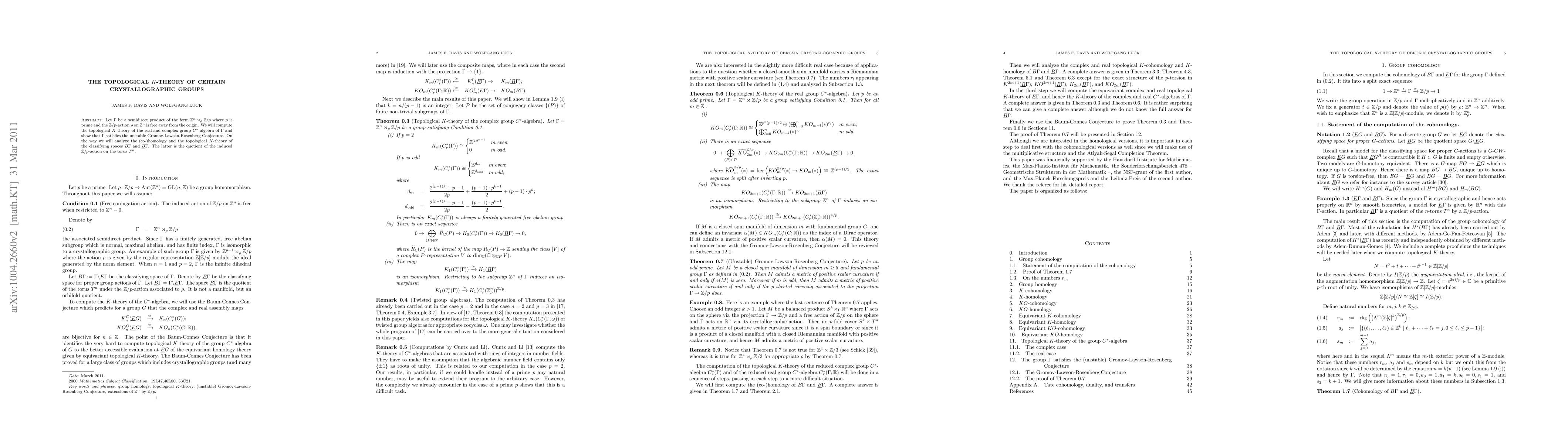 This paper computes the topological K-theory of certain crystallographic groups, satisfying the unstable Gromov-Lawson-Rosenberg Conjecture, and analyzes their classifying spaces BGamma and underbar{B}Gamma.