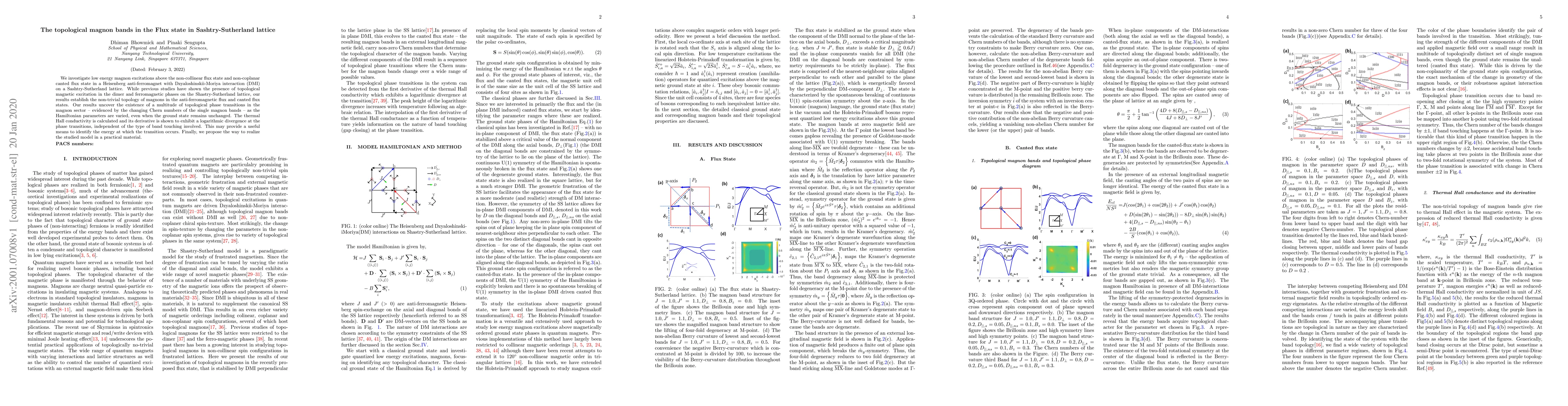 This paper investigates low-energy magnon excitations in a Heisenberg anti-ferromagnet on a Sashtry-Sutherland lattice, revealing non-trivial topological magnon bands in flux states. It identifies multiple topological phase transitions and a logarithmic divergence in thermal Hall conductivity, suggesting a practical method for realizing these states in materials.