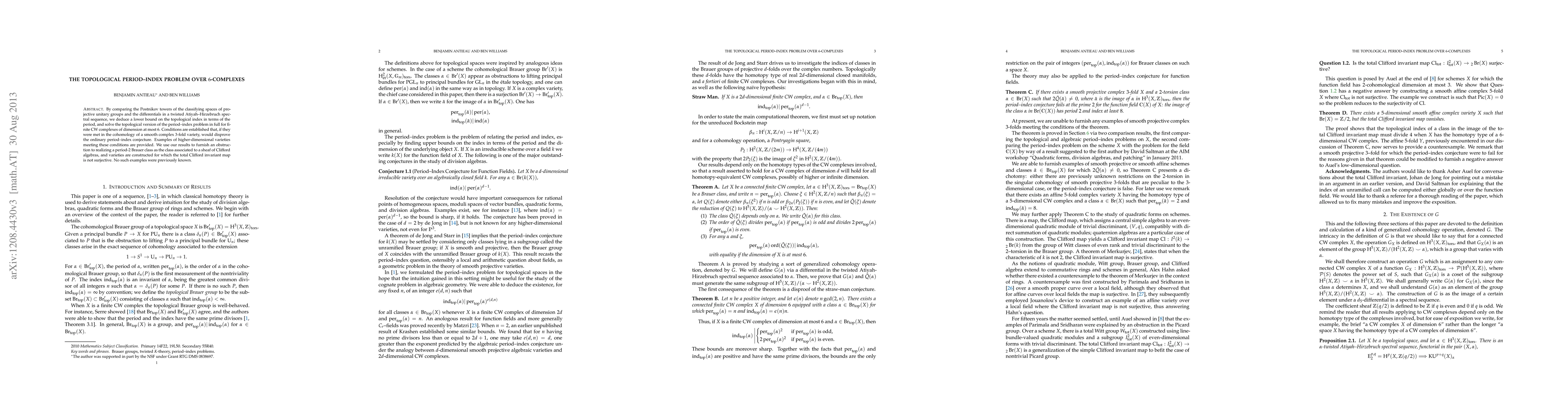 This paper resolves the topological period-index problem for 6-complexes by establishing a lower bound on the topological index via a comparison of classifying spaces of projective unitary groups and twisted Atiyah-Hirzebruch spectral sequences. It also provides new obstructions to realizing period-2 Brauer classes as Clifford algebra classes and constructs new examples of varieties where the total Clifford invariant map is not surjective.