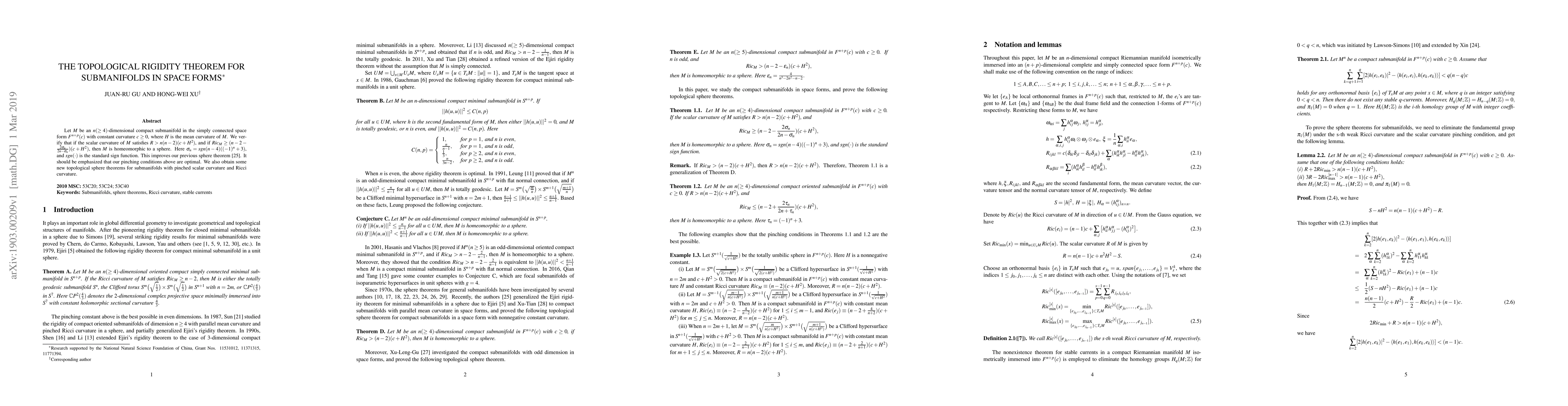This research paper proves that a compact submanifold in space form with certain curvature conditions is homeomorphic to a sphere.