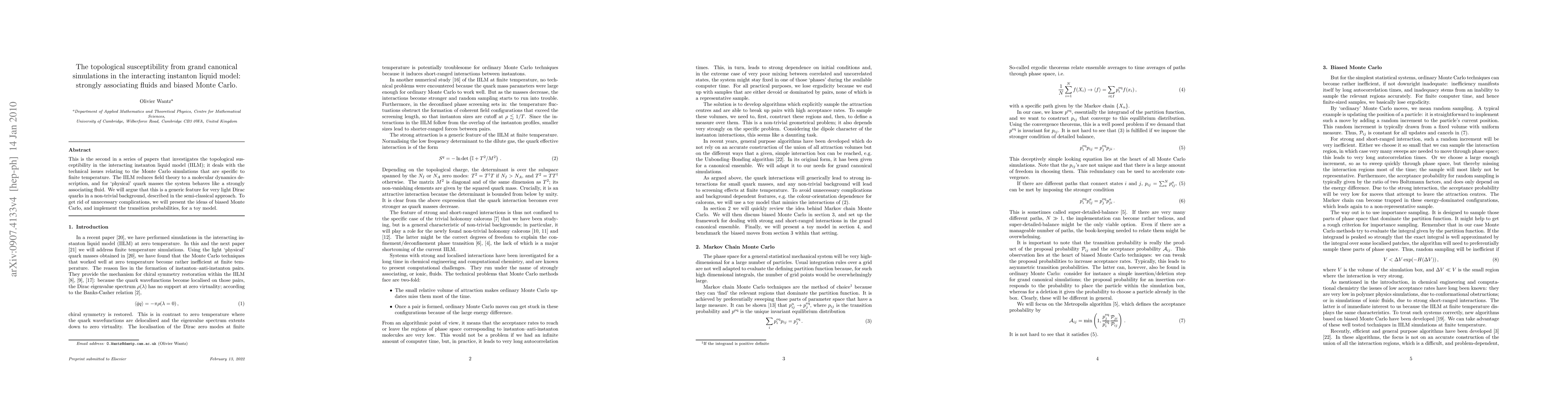 This is the second in a series of papers that investigates the topological susceptibility in the interacting instanton liquid model (IILM) at finite temperature, and deals with the technical issues relating to the Monte Carlo simulations. The IILM reduces field theory to a molecular dynamics description, and for `physical' quark masses the system behaves like a strongly associating fluid. We will argue that this is a generic feature for very light Dirac quark in a non-trivial background, described in the semi-classical approach. To get rid of unnecessary complications, we will present the ideas of biased Monte Carlo, and implement the transition probabilities, for a toy model.
