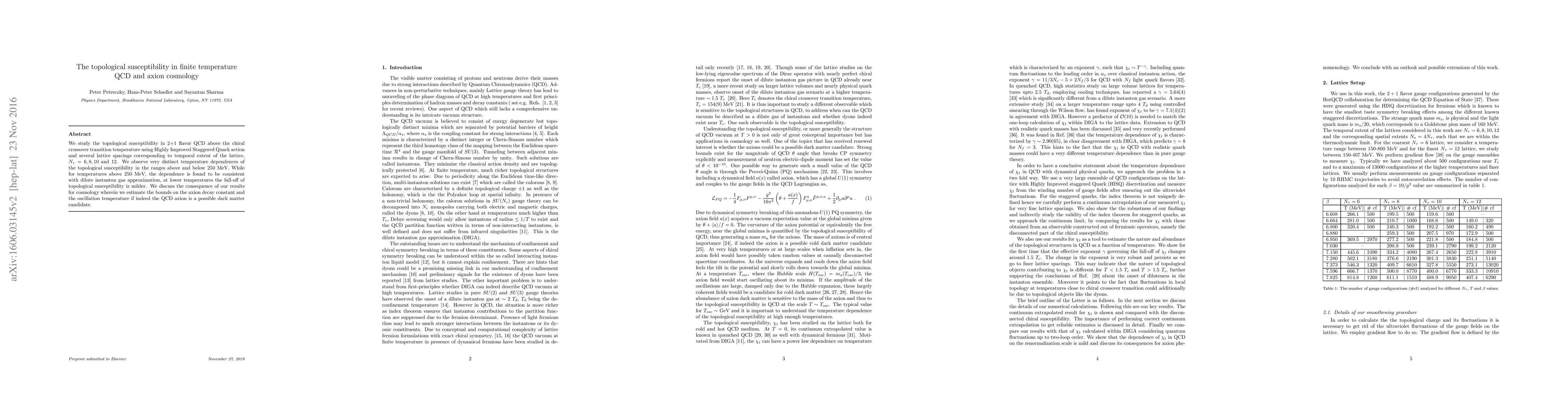 This research investigates the topological susceptibility in 2+1 flavor QCD at finite temperatures, finding distinct temperature dependencies above and below 250 MeV, and discusses implications for axion cosmology, estimating bounds on the axion decay constant and its oscillation temperature as a potential dark matter candidate.