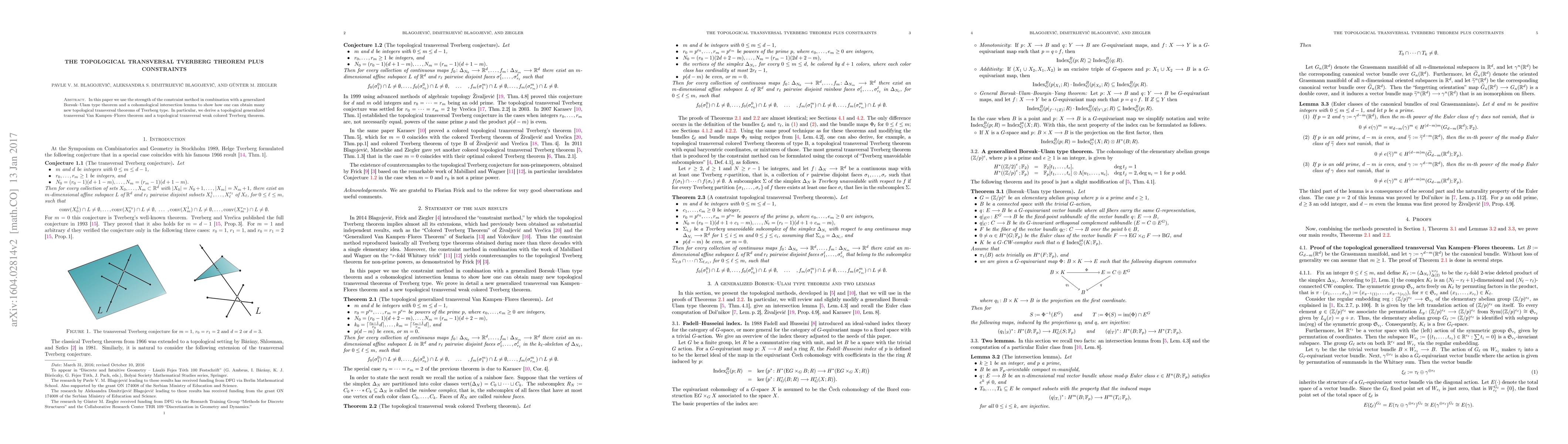 This paper combines the constraint method with a generalized Borsuk-Ulam theorem and a cohomological intersection lemma to derive new topological transversal theorems of Tverberg type, including a generalized transversal Van Kampen-Flores theorem and a weak colored Tverberg theorem.