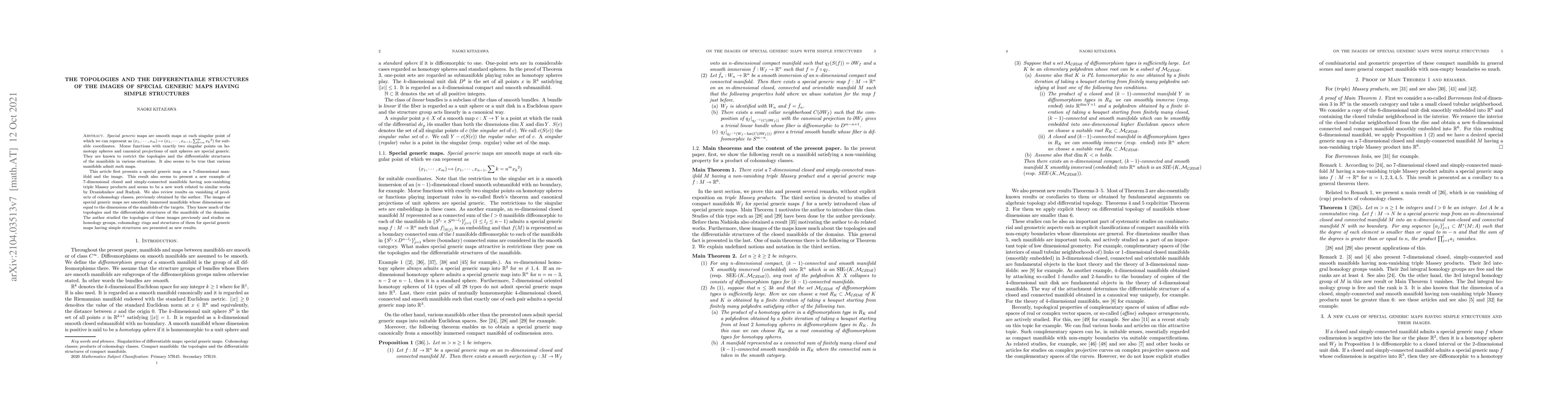 This paper investigates special generic maps, which are smooth maps with simple structures, and their effects on the topologies and differentiable structures of their images. The study presents new findings on the images of such maps on $7$-dimensional manifolds, including examples with non-vanishing triple Massey products, and reviews previous results on the vanishing of products of cohomology classes.
