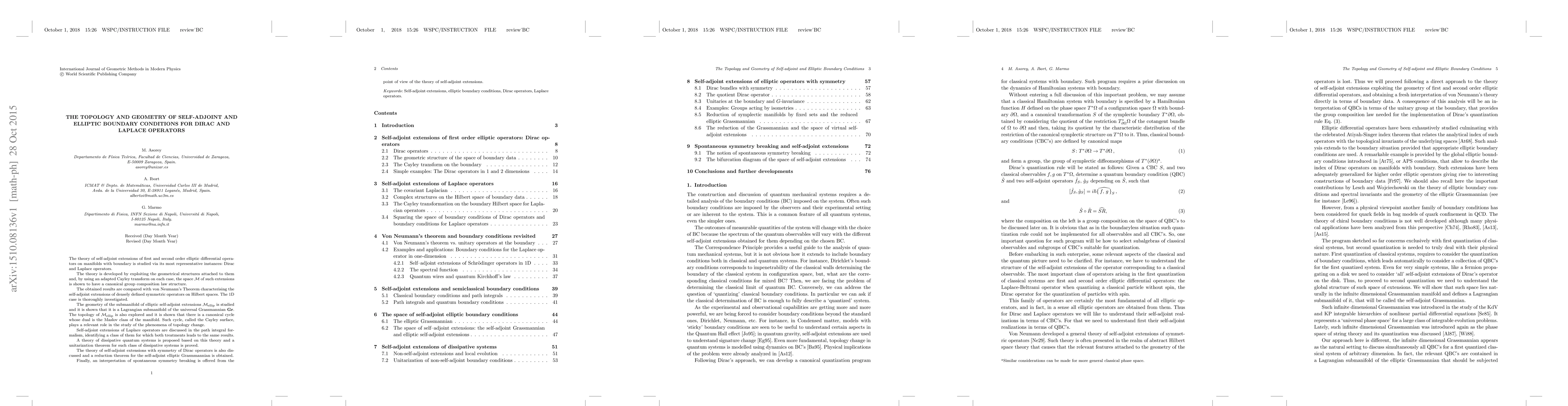 This paper explores the self-adjoint extensions of Dirac and Laplace operators on manifolds with boundary, revealing a canonical group structure and comparing results with von Neumann's Theorem. It investigates the geometry and topology of the submanifold of elliptic self-adjoint extensions, proposing a theory of dissipative quantum systems and interpreting spontaneous symmetry breaking.