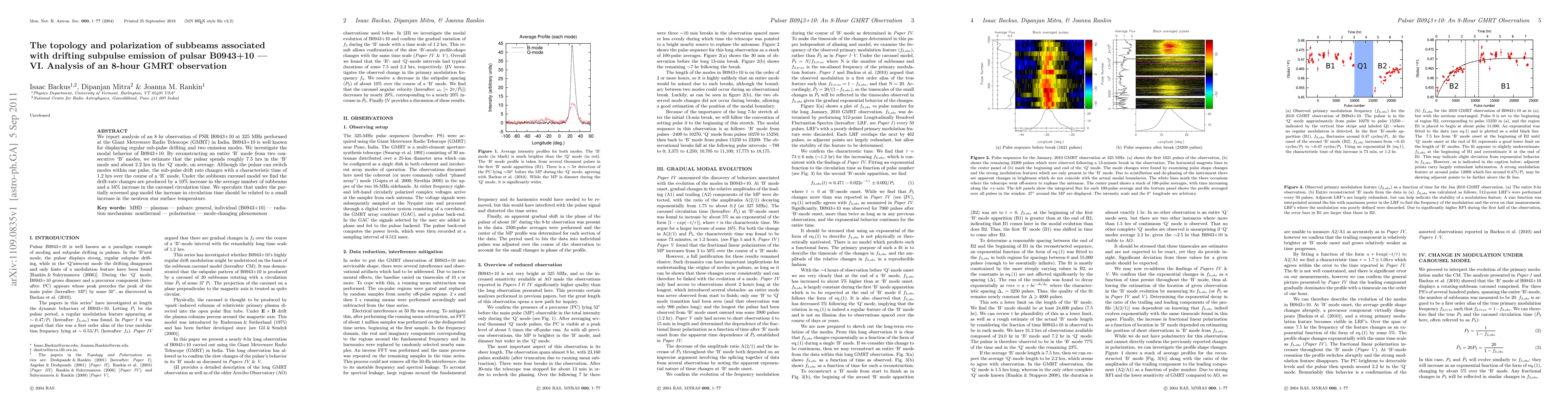We report analysis of an 8 hr observation of PSR B0943+10 at 325 MHz performed at the Giant Metrewave Radio Telescope (GMRT) in India. B0943+10 is well known for displaying regular sub-pulse drifting and two emission modes. We investigate the modal behavior of B0943+10. By reconstructing an entire 'B' mode from two consecutive 'B' modes, we estimate that the pulsar spends roughly 7.5 hrs in the 'B' mode and about 2.2 hrs in the 'Q' mode, on average. Although the pulsar can switch modes within one pulse, the sub-pulse drift rate changes with a characteristic time of 1.2 hrs over the course of a 'B' mode. Under the subbeam carousel model we find the drift-rate changes are produced by a 10% increase in the average number of subbeams and a 16% increase in the carousel circulation time. We speculate that under the partially screened gap model the increase in circulation time should be related to a small increase in the neutron star surface temperature.