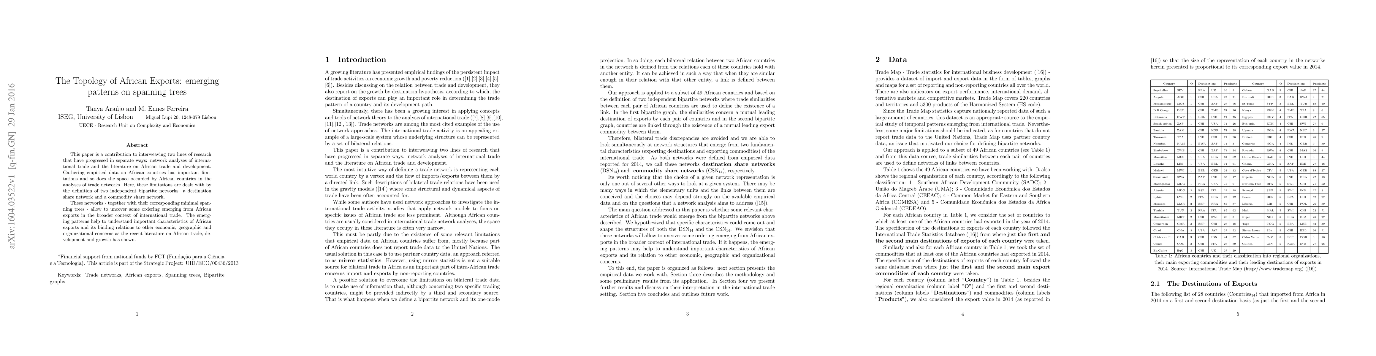 This paper combines network analysis of international trade with African trade and development studies, defining two bipartite networks to address data limitations and revealing emerging patterns in African exports through their minimal spanning trees, highlighting significant characteristics and connections to broader economic and geographic factors.
