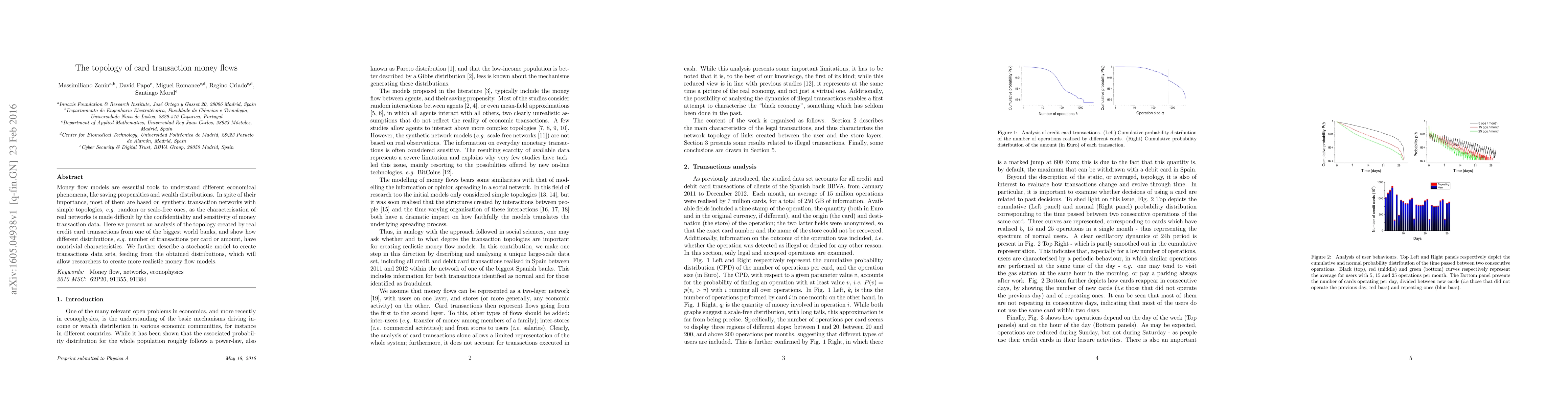 The paper presents a stochastic model for generating synthetic transaction datasets based on real probability distributions derived from credit card transactions, enabling more realistic money flow models.