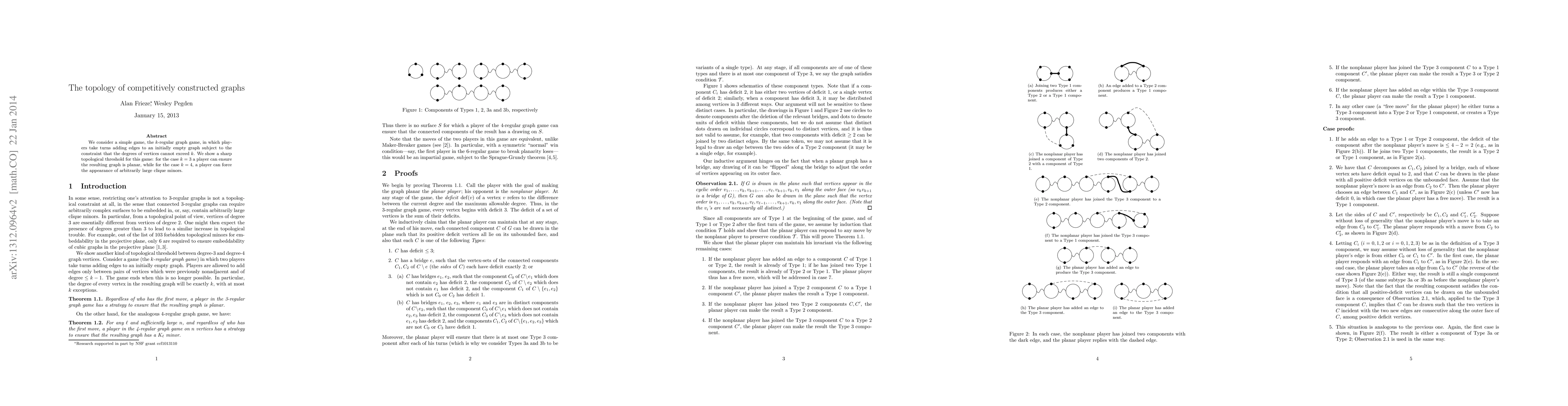 We consider a simple game, the $k$-regular graph game, in which players take turns adding edges to an initially empty graph subject to the constraint that the degrees of vertices cannot exceed $k$. We show a sharp topological threshold for this game: for the case $k=3$ a player can ensure the resulting graph is planar, while for the case $k=4$, a player can force the appearance of arbitrarily large clique minors.