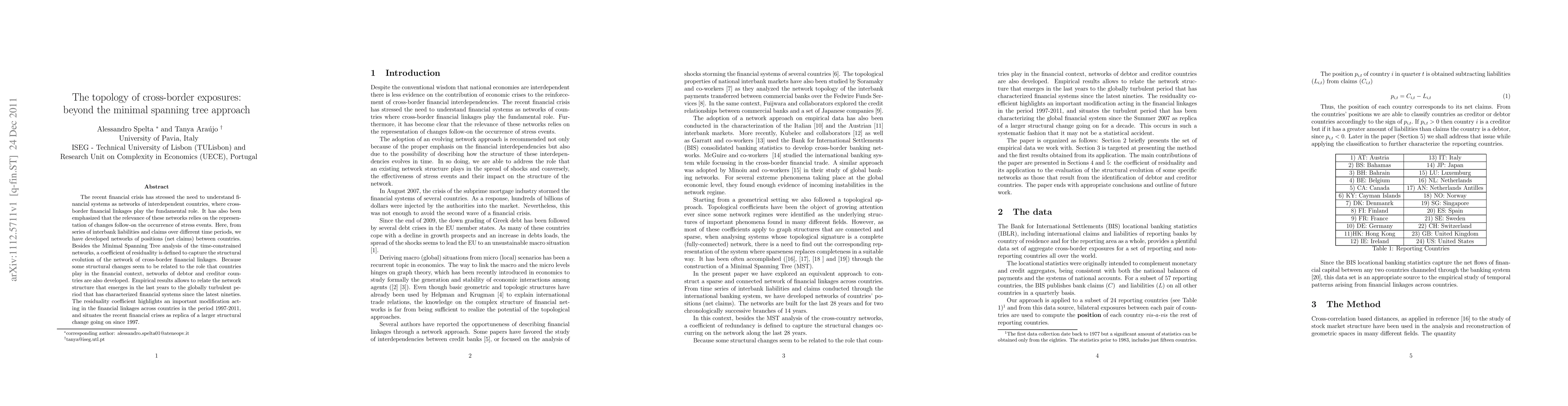 The recent financial crisis has stressed the need to understand financial systems as networks of interdependent countries, where cross-border financial linkages play the fundamental role. It has also been emphasized that the relevance of these networks relies on the representation of changes follow-on the occurrence of stress events. Adopting a topological approach we are able to address the role that network structures play in the spread of shocks and conversely, the effectiveness of stress events and its impact on the structure of the networks. Here, from series of interbank liabilities and claims over different time periods, we have developed networks of positions (net claims) between countries. Besides the Minimal Spanning Tree analysis of the time-constrained networks, a coefficient of residuality is defined to capture the structural evolution of the network of cross-border financial linkages. Because some structural changes seem to be related to the role that countries play in the financial context, networks of debtor and creditor countries are also developed. Empirical results allows to relate the network structure that emerges in the last years to the globally turbulent period that has characterized financial systems since the latest nineties. The residuality coefficient highlights an important modification acting in the financial linkages across countries in the period 1997-2011, and situates the recent financial crises as replica of a larger structural change going on since 1997.