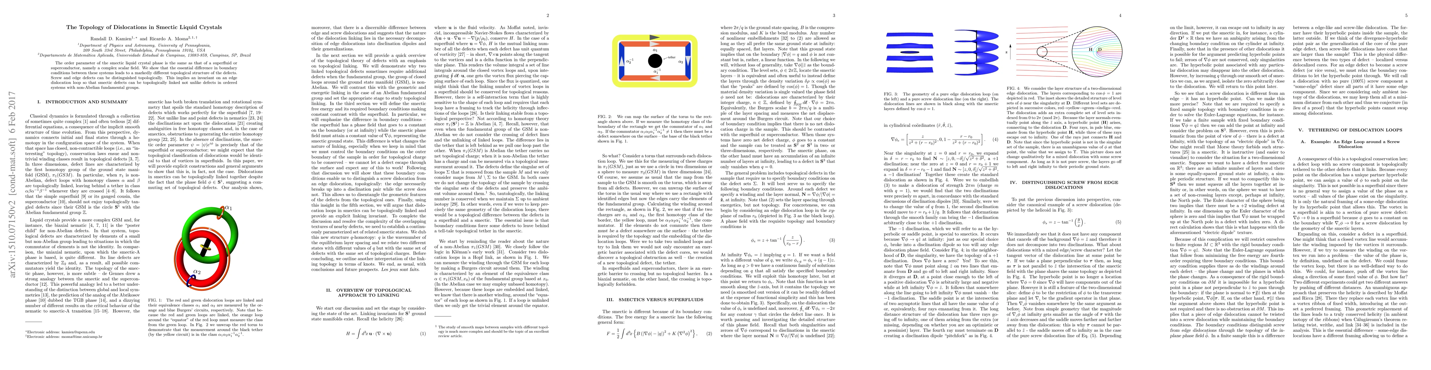 This paper explores the topological structure of dislocations in smectic liquid crystals, revealing distinct screw and edge defects due to different boundary conditions compared to superfluids and superconductors. The study finds that smectic defects can be topologically linked, similar to defects in systems with non-Abelian fundamental groups.