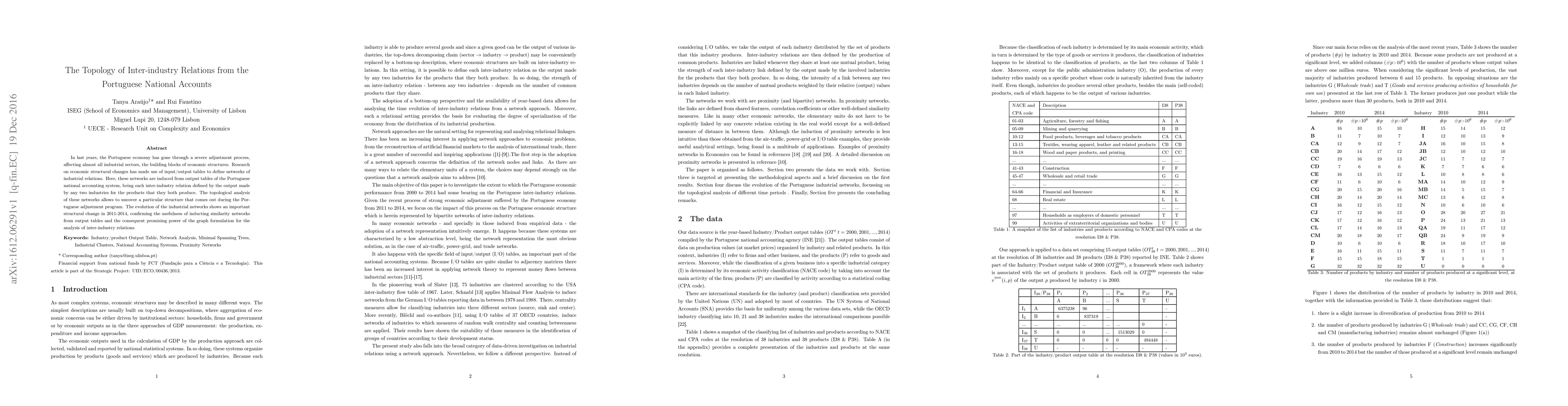 This study analyzes Portuguese industrial networks using output tables from the national accounting system. It reveals a significant structural shift in 2011-2014, demonstrating the effectiveness of employing similarity networks from output tables for understanding inter-industry relations.