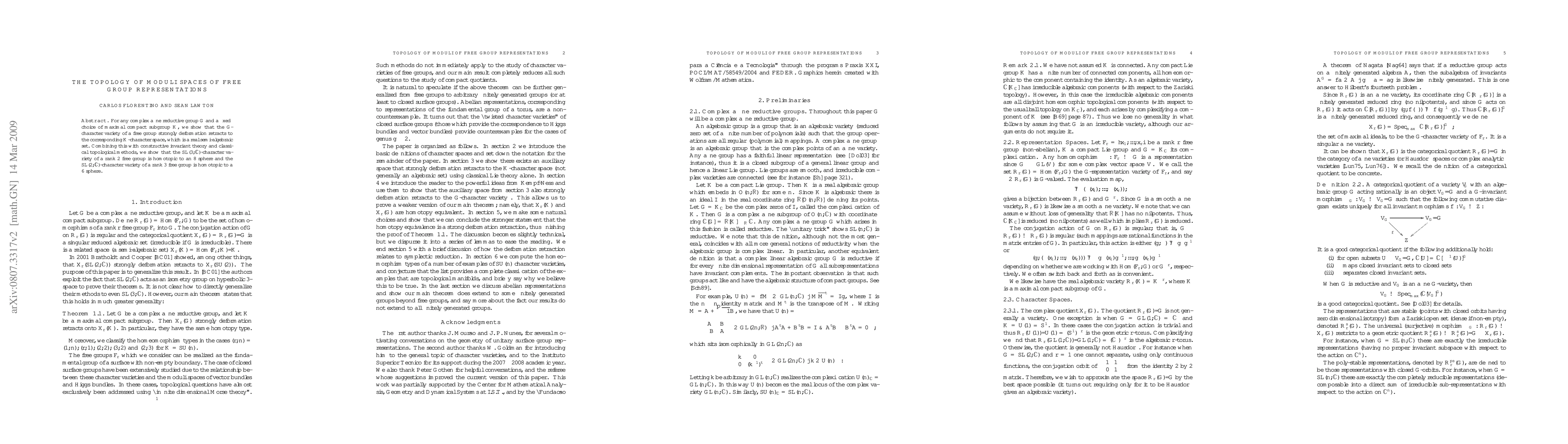 Researchers show that certain groups of complex affine reductive groups' character varieties are homotopic to specific spheres, using a combination of topological methods and constructive invariant theory.