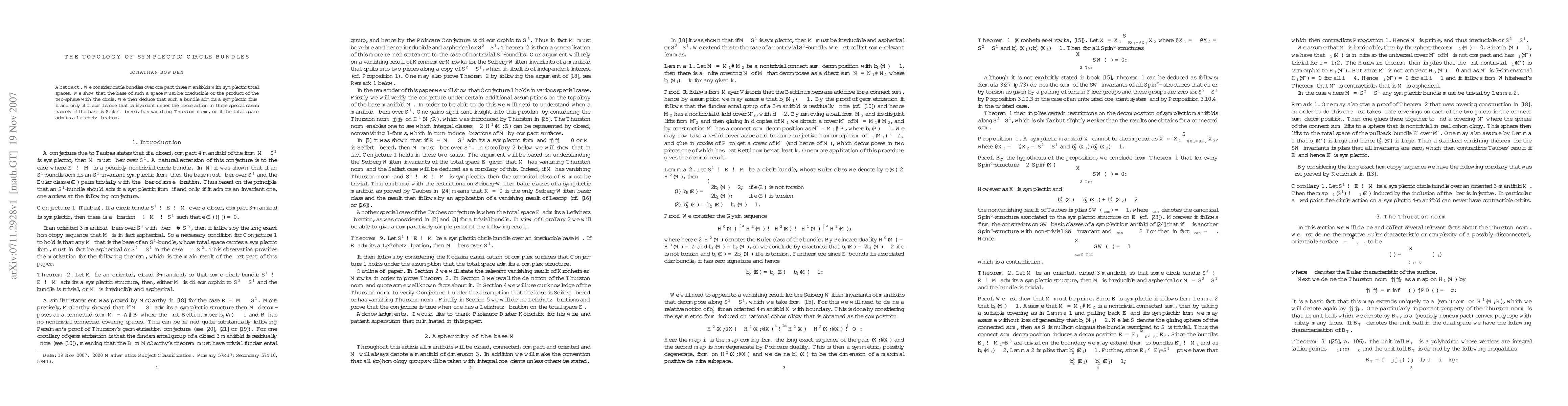 Research shows that circle bundles over compact three-manifolds with symplectic total spaces have base manifolds that are either irreducible or the product of a 2-sphere and a circle. The existence of a symplectic form depends on specific conditions related to the bundle's properties.