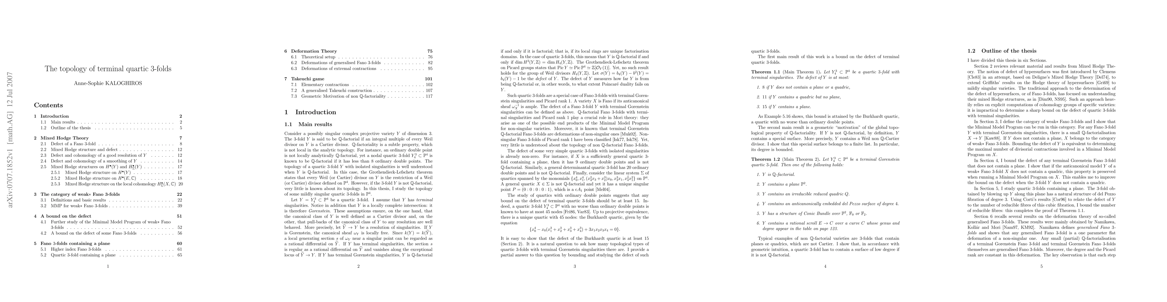 In this thesis, I determine a bound on the defect of terminal Gorenstein quartic 3-folds. More generally, I study the defect of terminal Gorenstein Fano 3-folds of Picard rank 1 and genus at least 3. I state a geometric "motivation" of non Q-factoriality in the case of quartics.