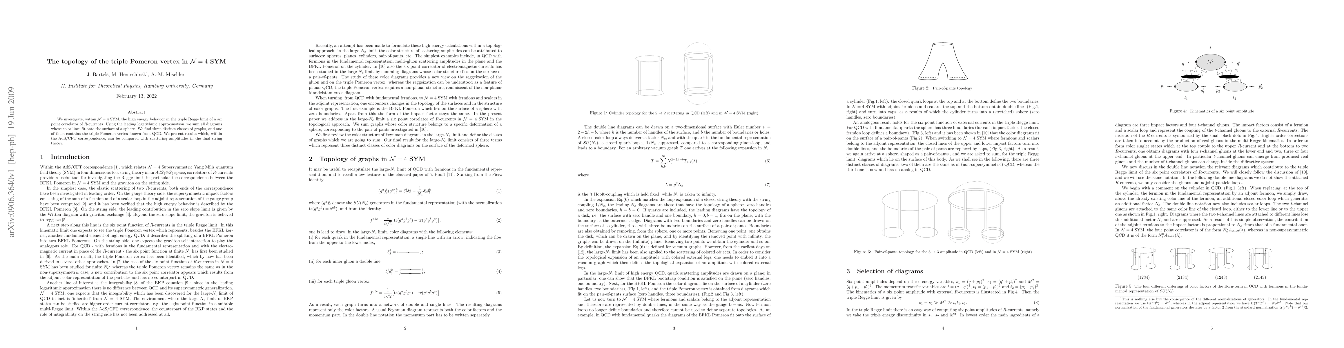 We investigate, within N=4 SYM, the high energy behavior in the triple Regge limit of a six point correlator of R-currents. Using the leading logarithmic approximation, we sum all diagrams whose color lines fit onto the surface of a sphere. We find three distinct classes of graphs, and one of them contains the triple Pomeron vertex known from QCD. We present results which, within the AdS/CFT correspondence, can be compared with scattering amplitudes in the dual string theory.