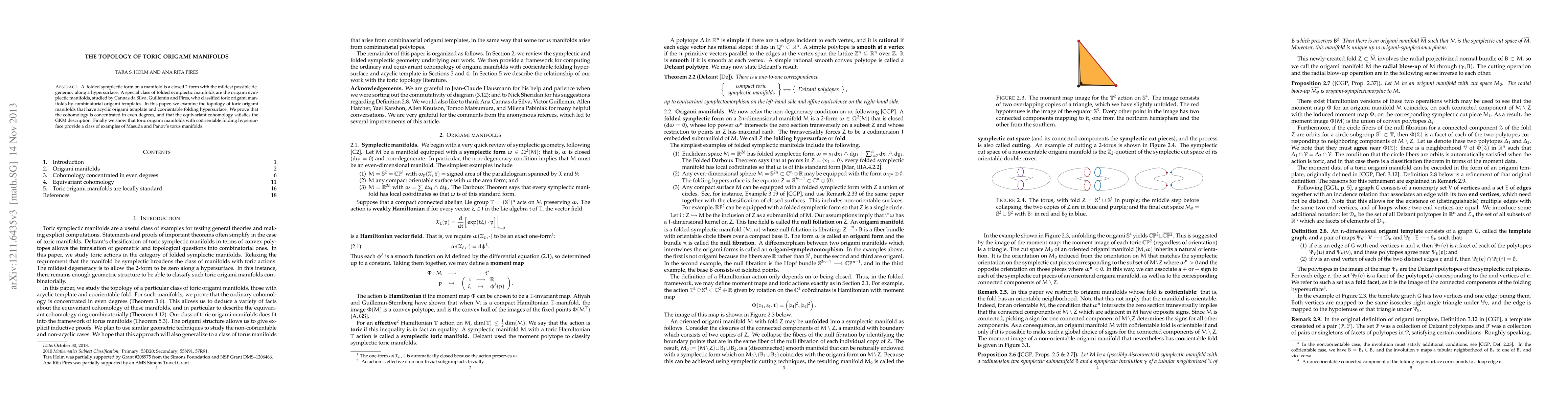 This paper explores the topology of toric origami manifolds, demonstrating that those with acyclic templates and co-orientable folding hypersurfaces have cohomology concentrated in even degrees and satisfy the GKM description in equivariant cohomology, thus exemplifying Masuda and Panov's torus manifolds.